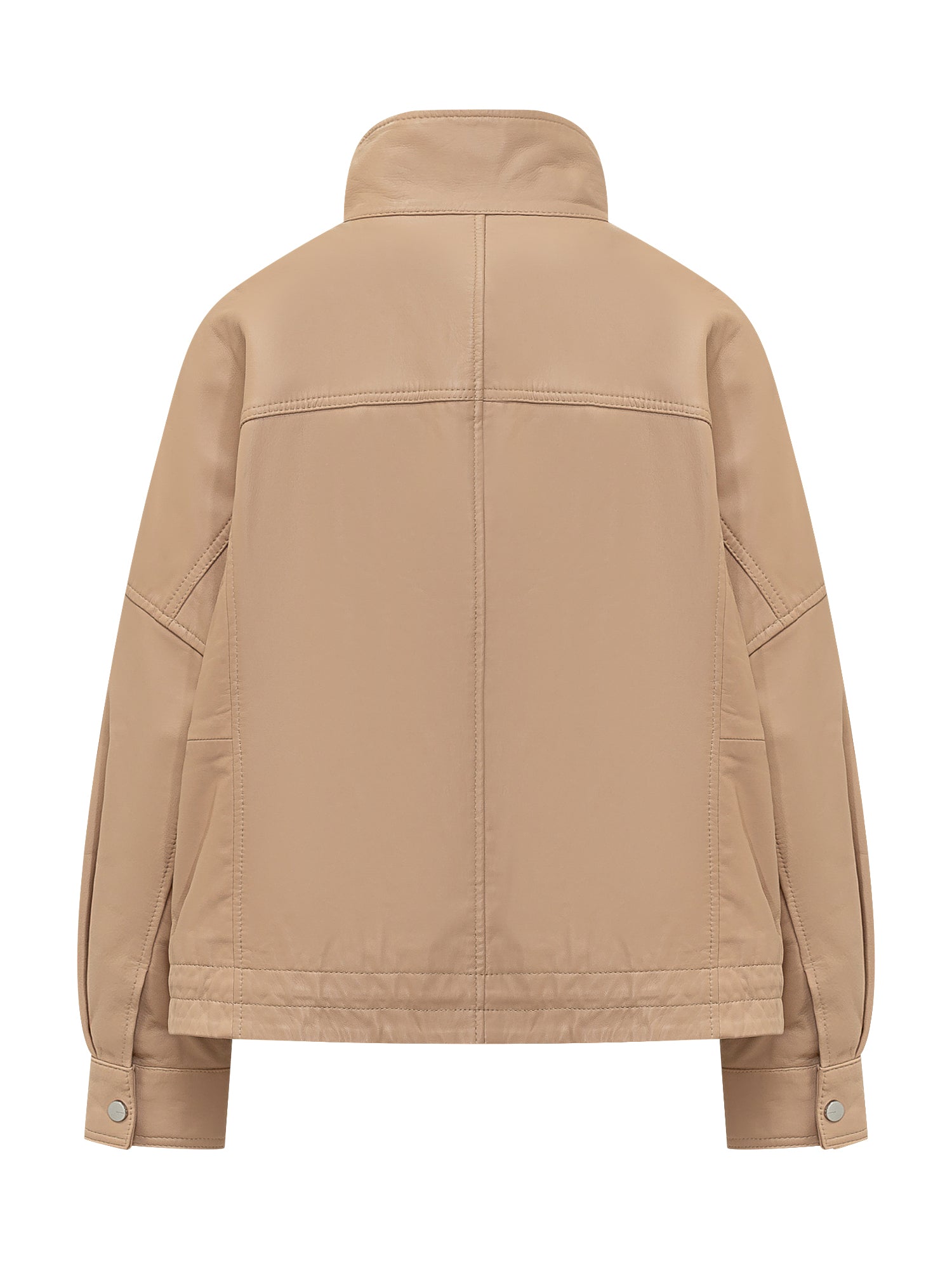 Blouson with high neck and front closure with concealed zip and snap buttons. Side pockets with zip and long sleeves with cuffs. Cropped design with wide silhouette, ideal for contemporary looks.