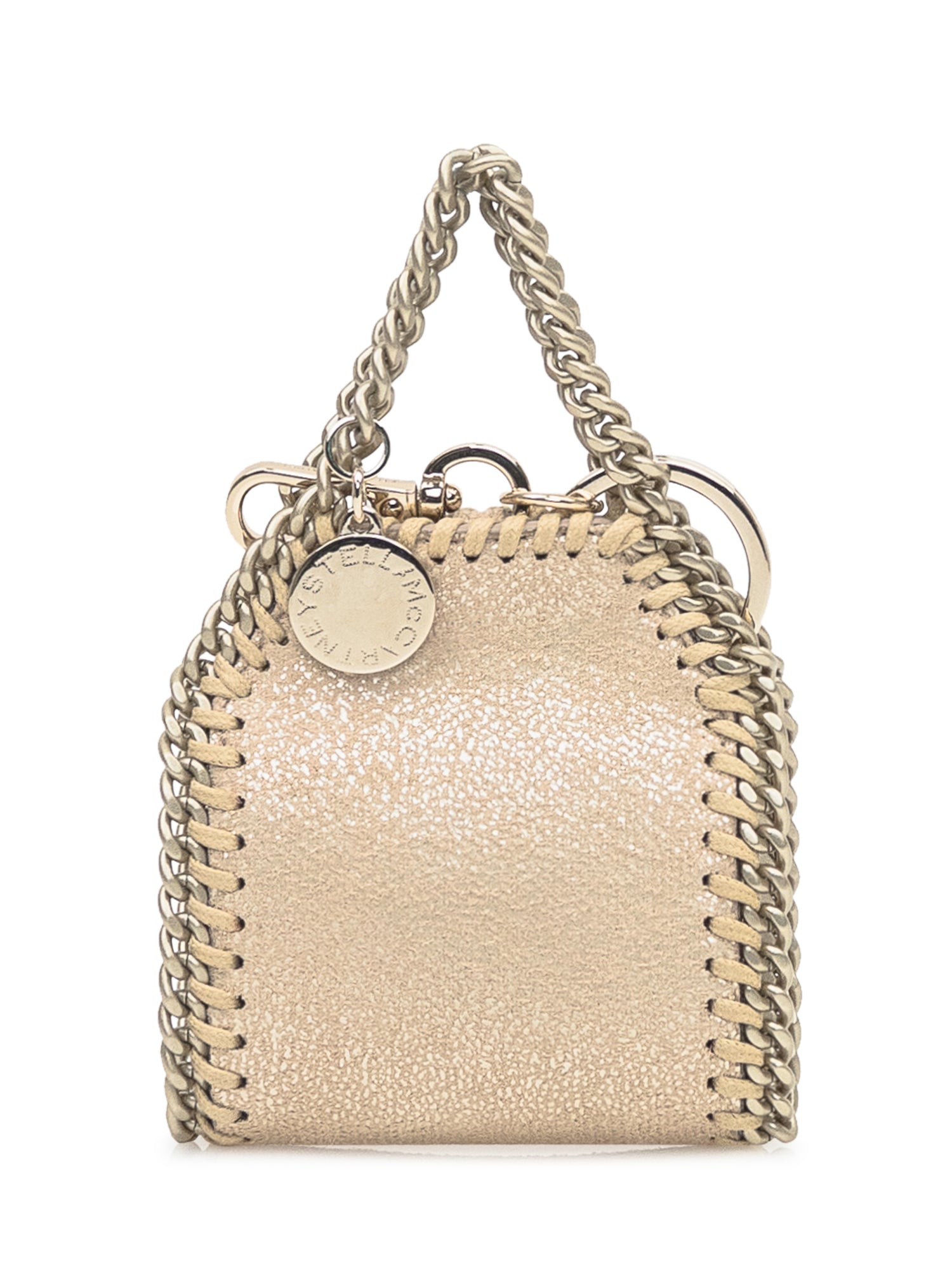 Falabella Airpods with laminated finish and signature chain detailing, complete with logo charm.