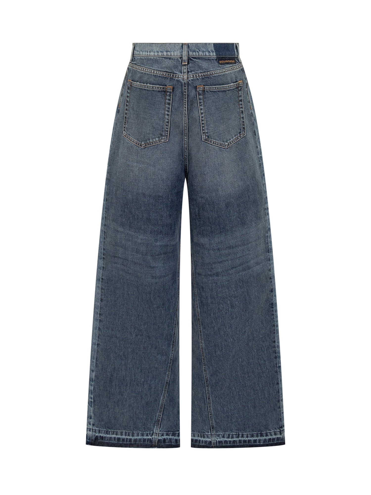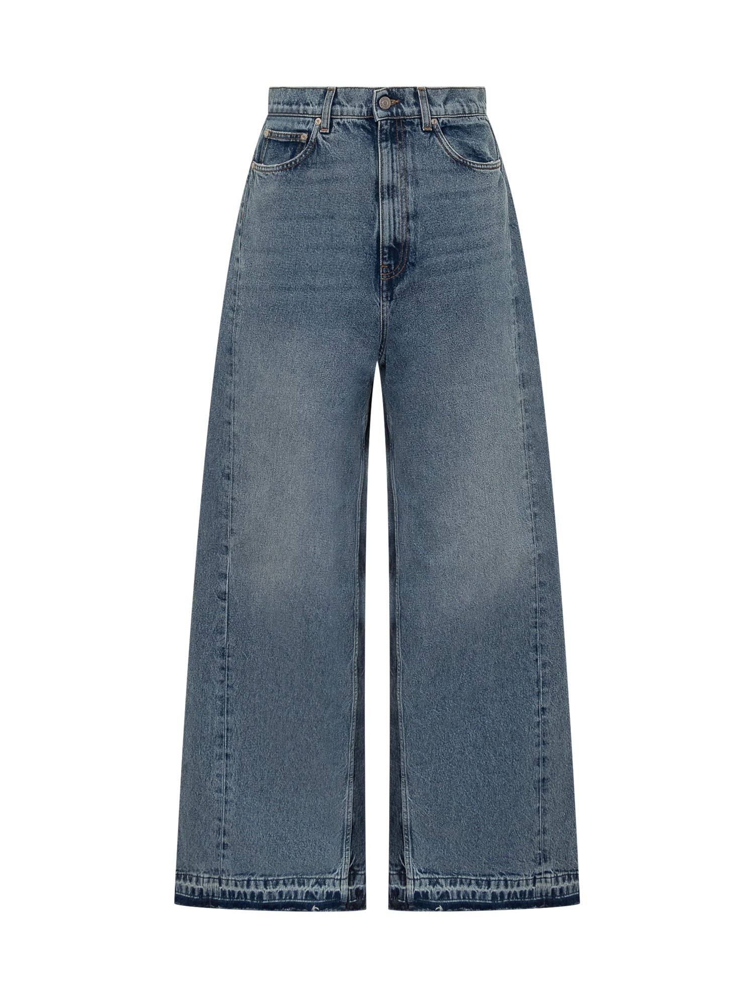 Wide leg. Five pockets. Belt loops. Zip and button closure.