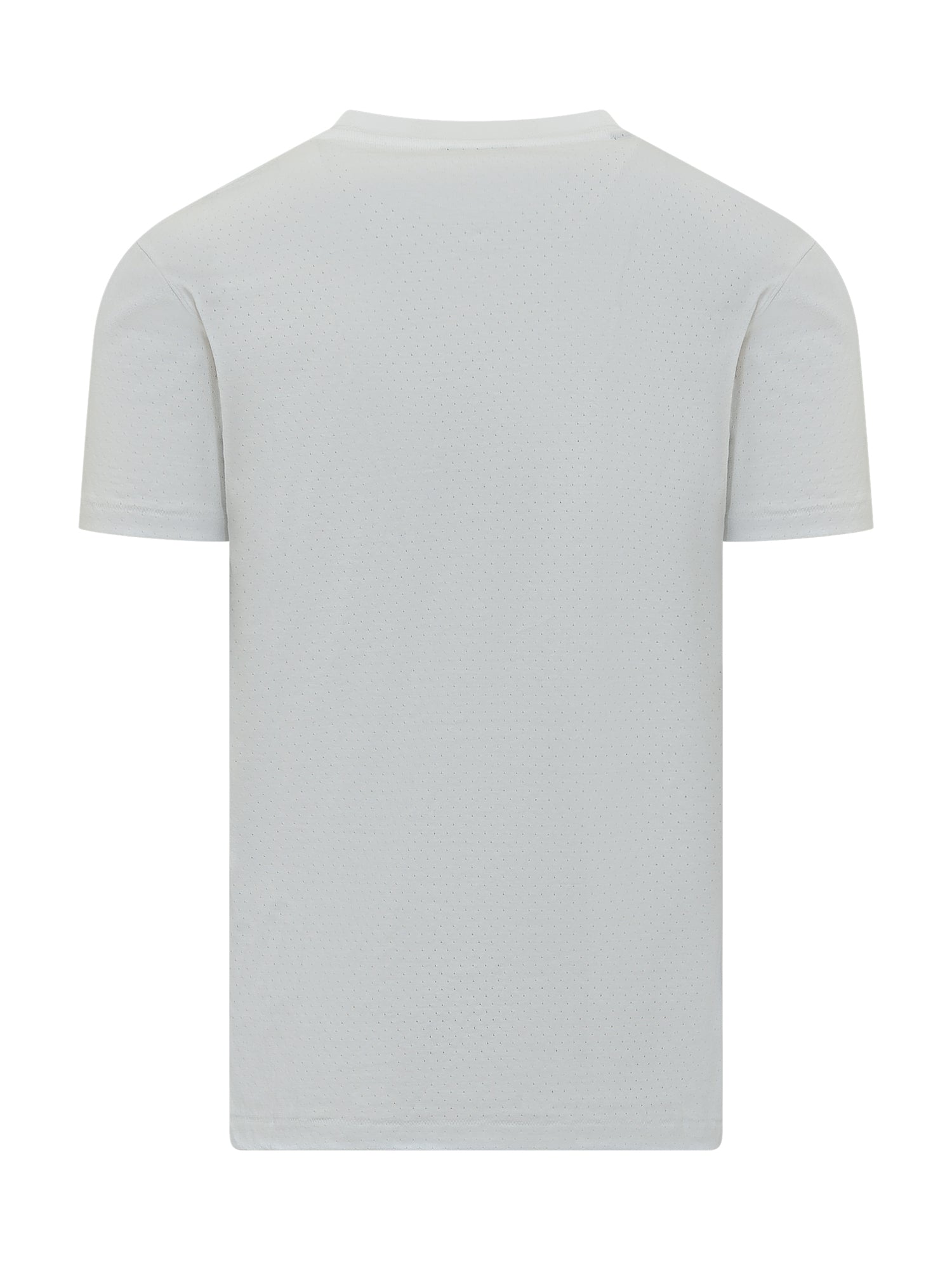 Short-sleeve crewneck T-shirt made from perforated fabric for enhanced breathability. Clean design and regular fit.