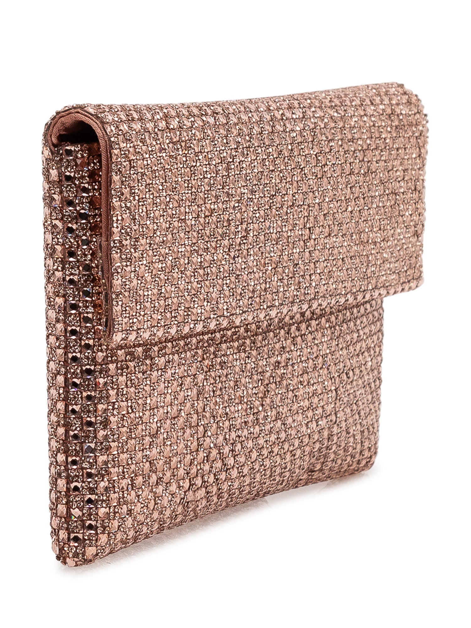 Soft clutch with a fold-over flap and all-over rhinestone finish.Size: 9.25x5.51x0.79