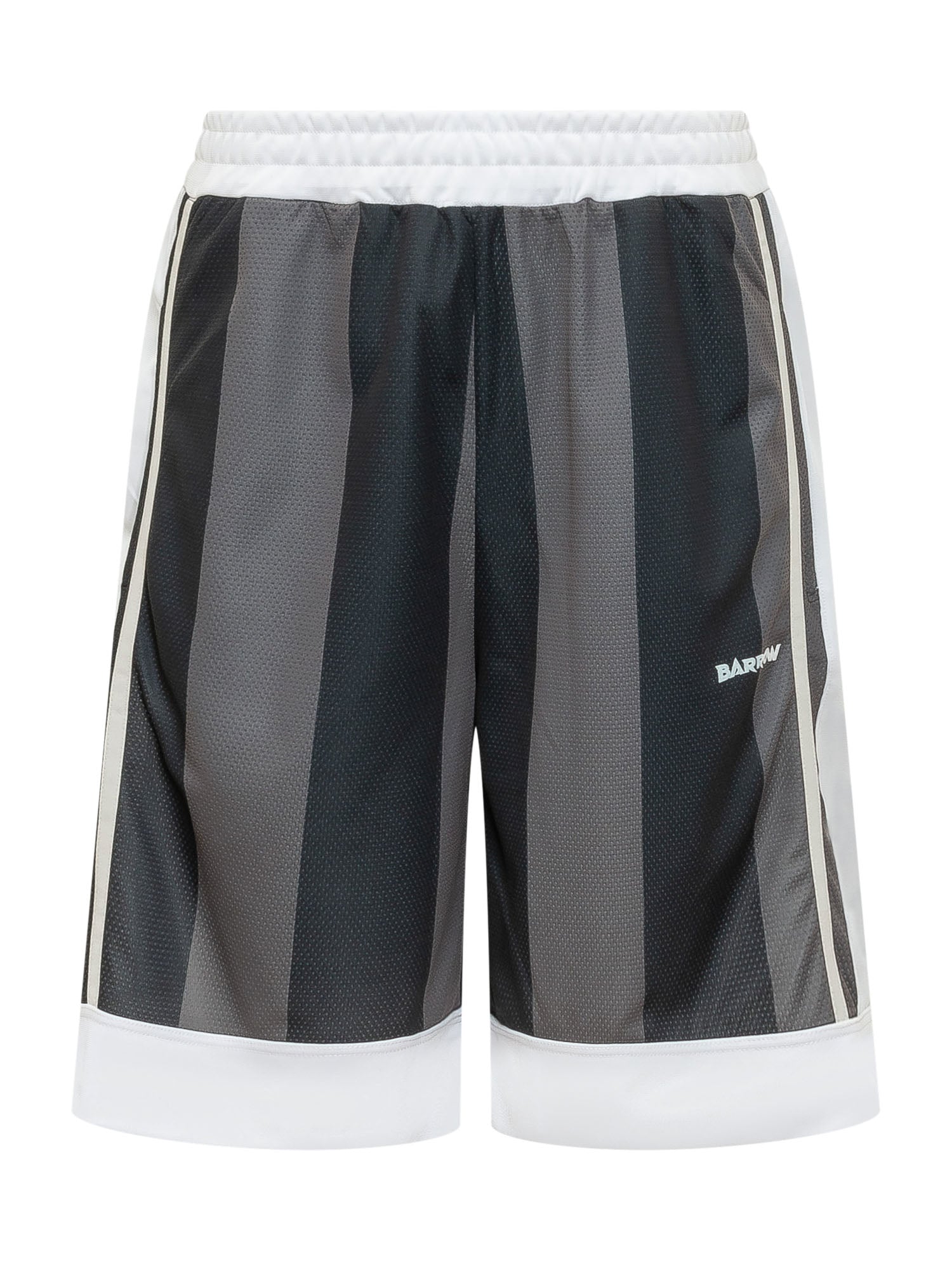 Mesh shorts with elasticated waistband, vertical striped pattern and printed logo, lightweight and breathable design
