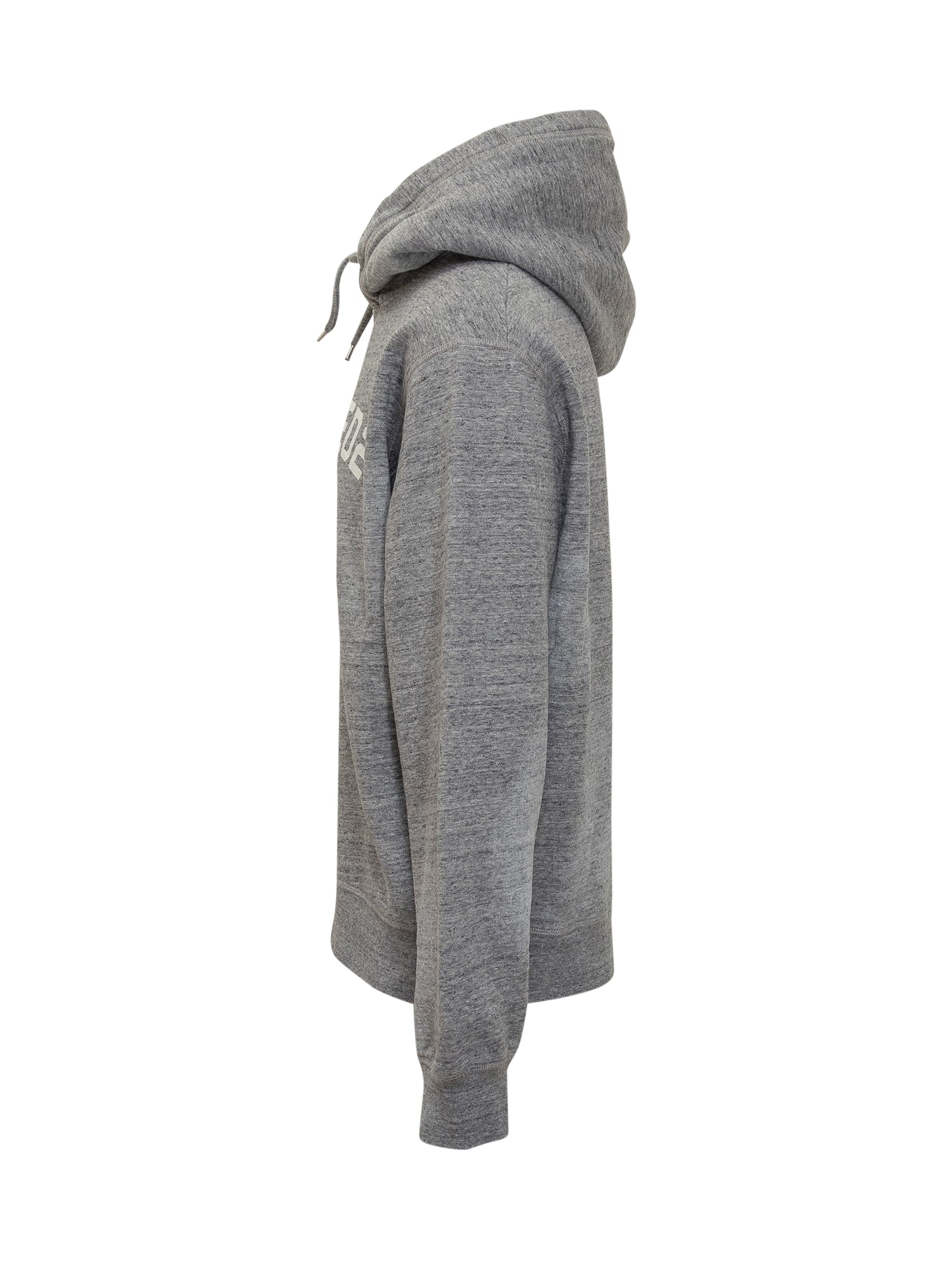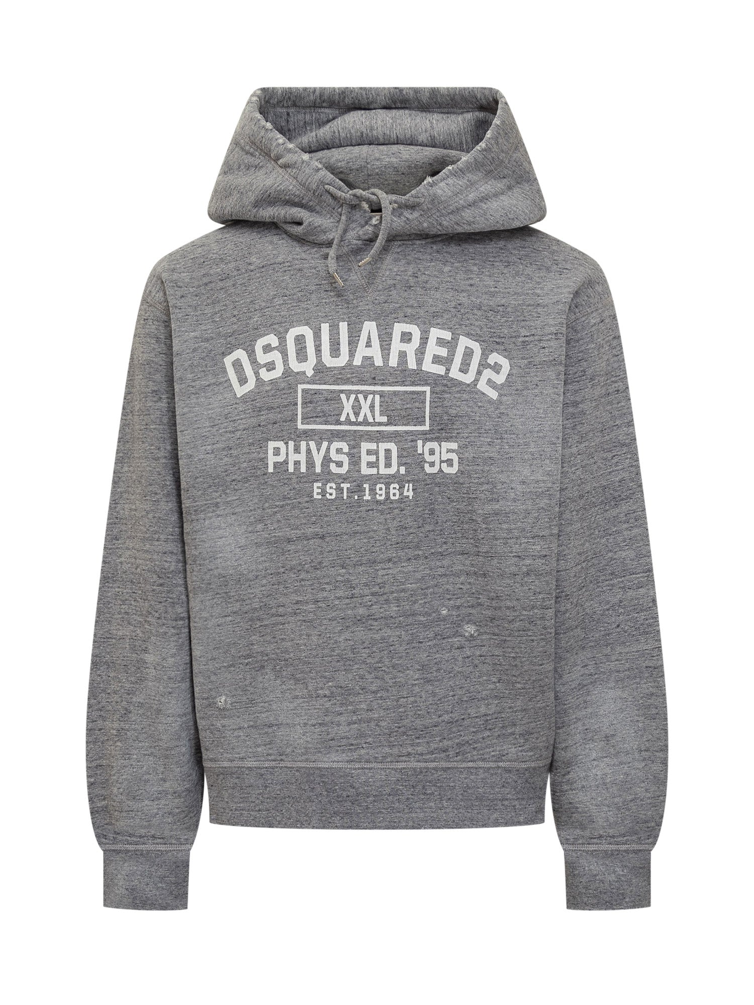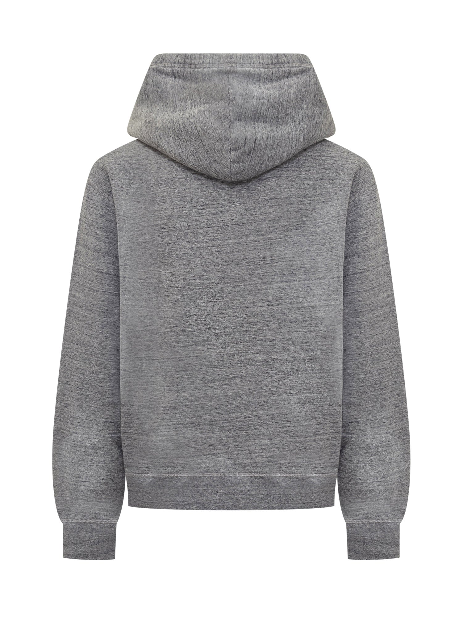 Dsquared2 hoodie in melange grey cotton with hood, college-style front print and subtle distressed touches.
