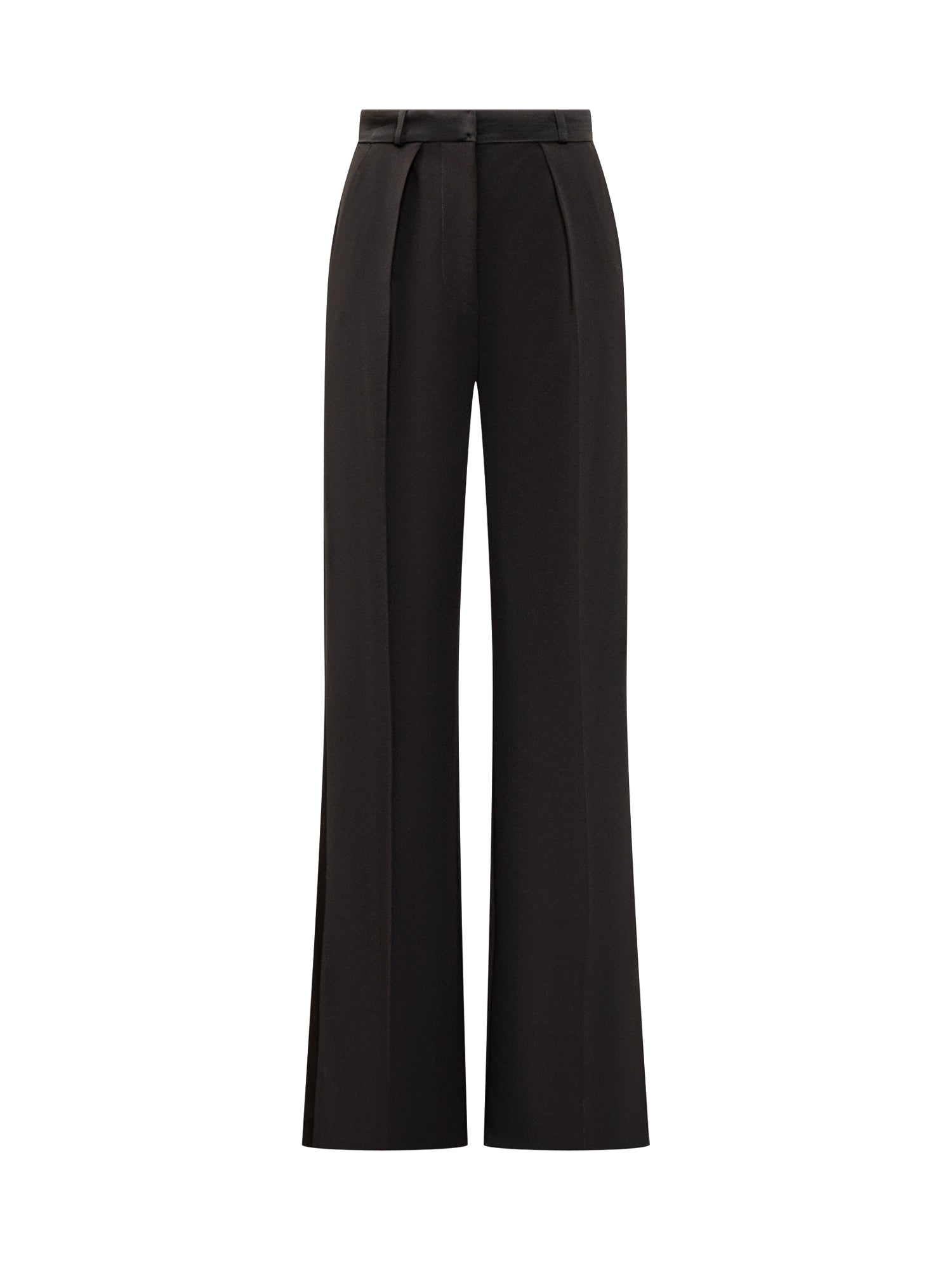 Elisabetta Franchi black palazzo trousers with satin belt. Fluid and elegant fit, perfect for office or evening wear. Front closure with zip and hooks for a secure and refined look.