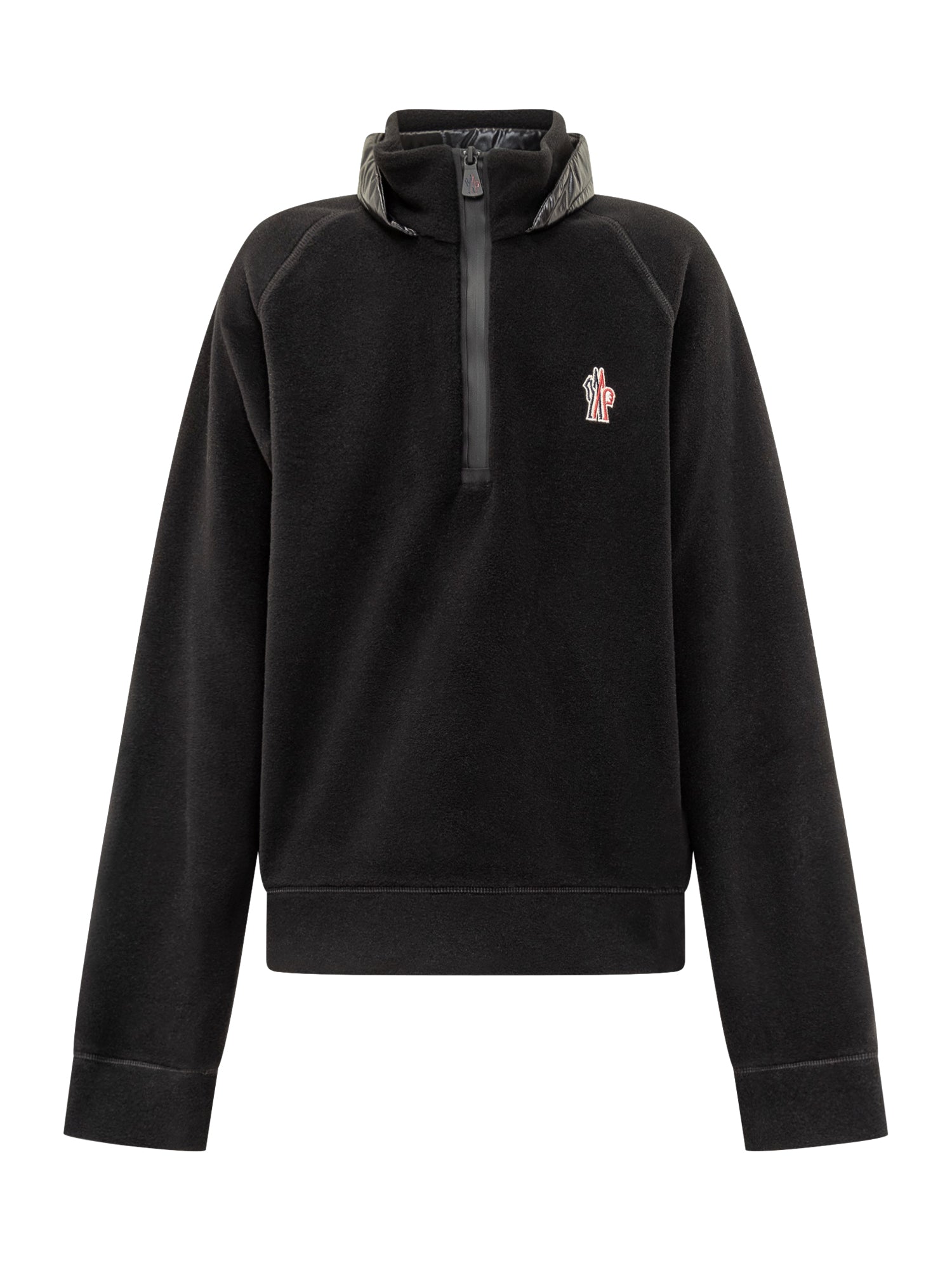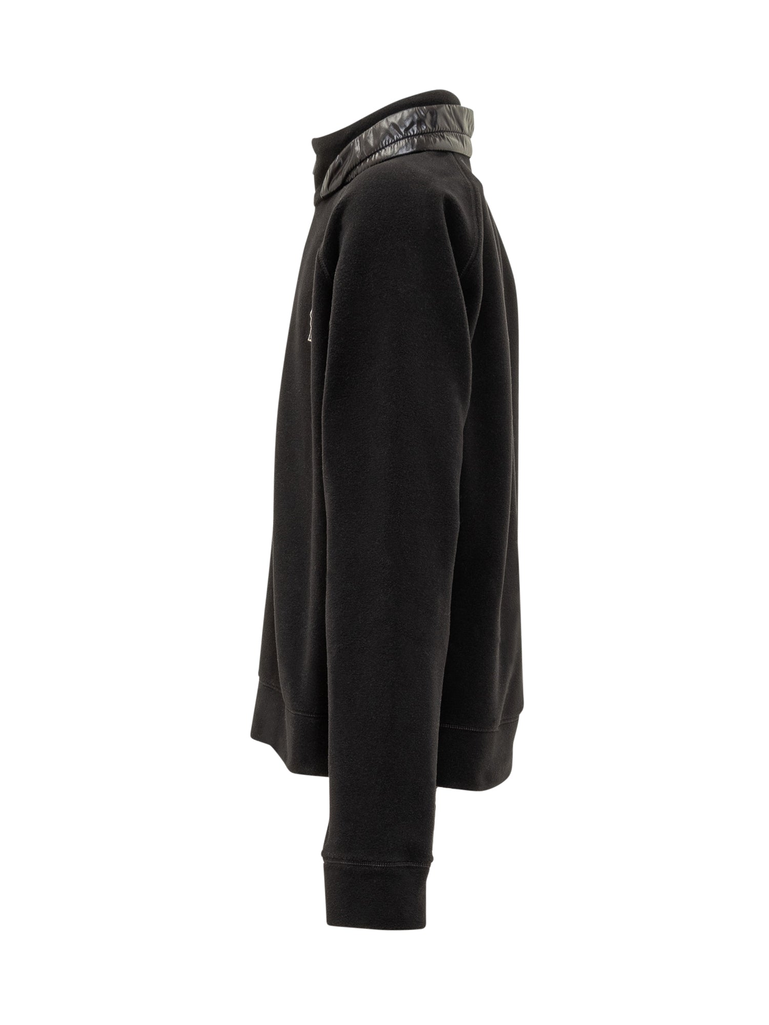 Moncler Grenoble black technical fleece sweatshirt with high collar and half zip. Quilted details and embroidered logo on the chest add a sporty yet refined touch, perfect for mountain or casual wear.