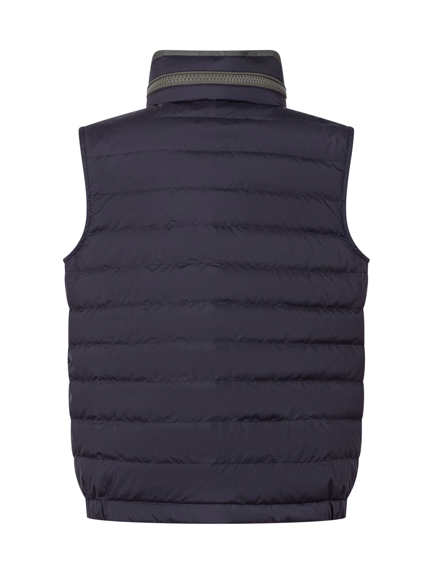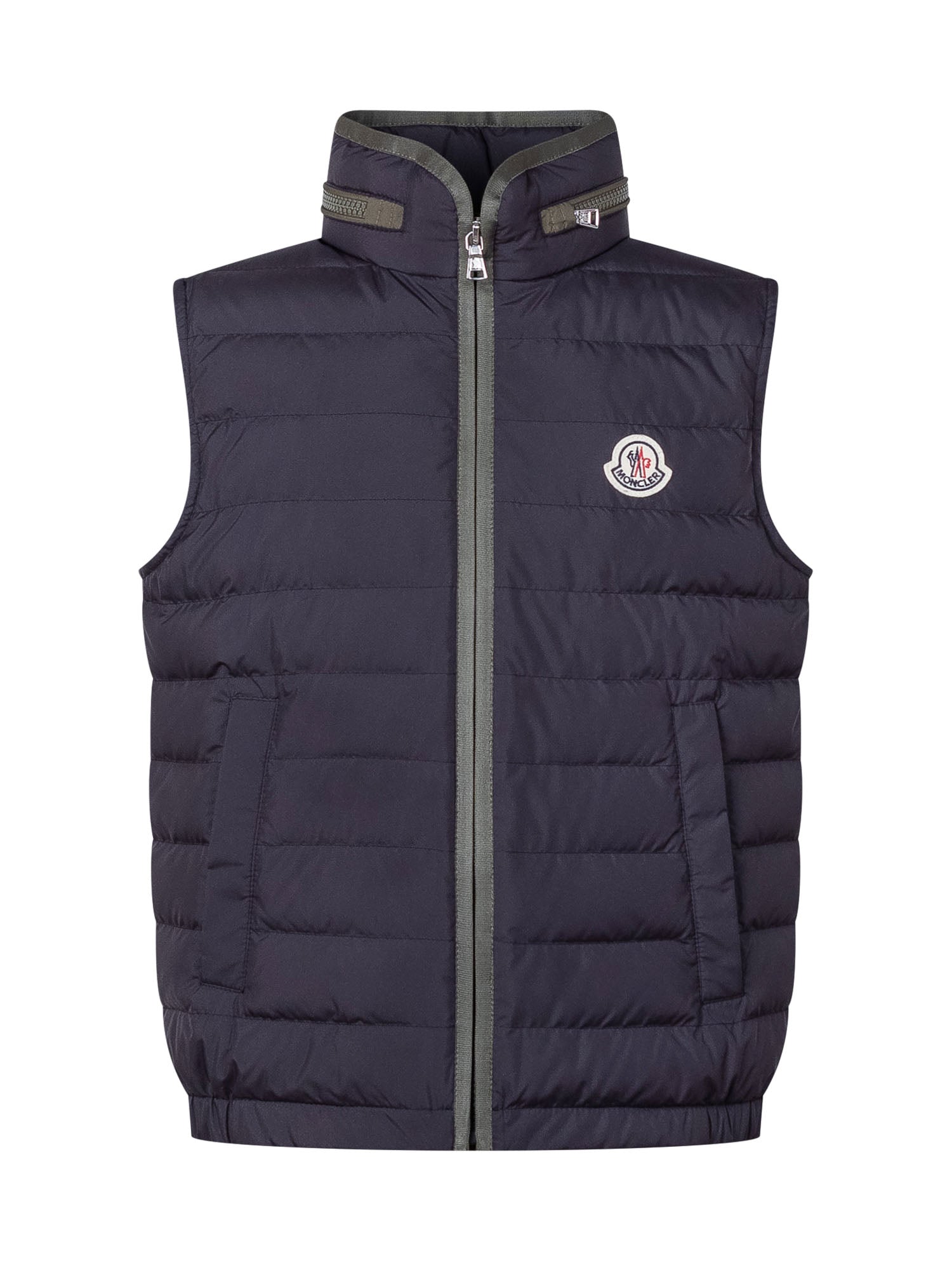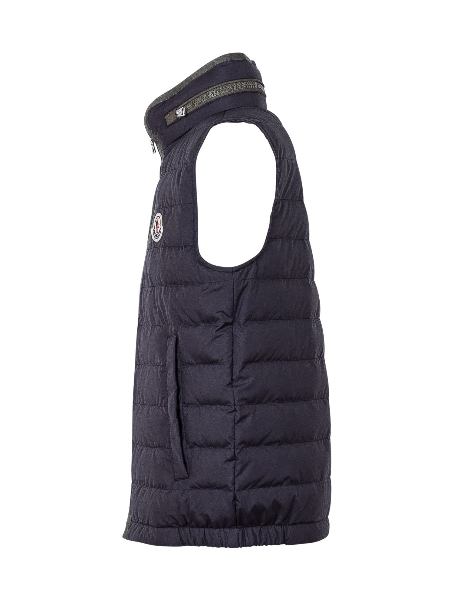 Lightweight padded vest with a high collar and front zip closure. Features side pockets and a logo patch on the chest, perfect for adding warmth while maintaining a sporty and versatile style.