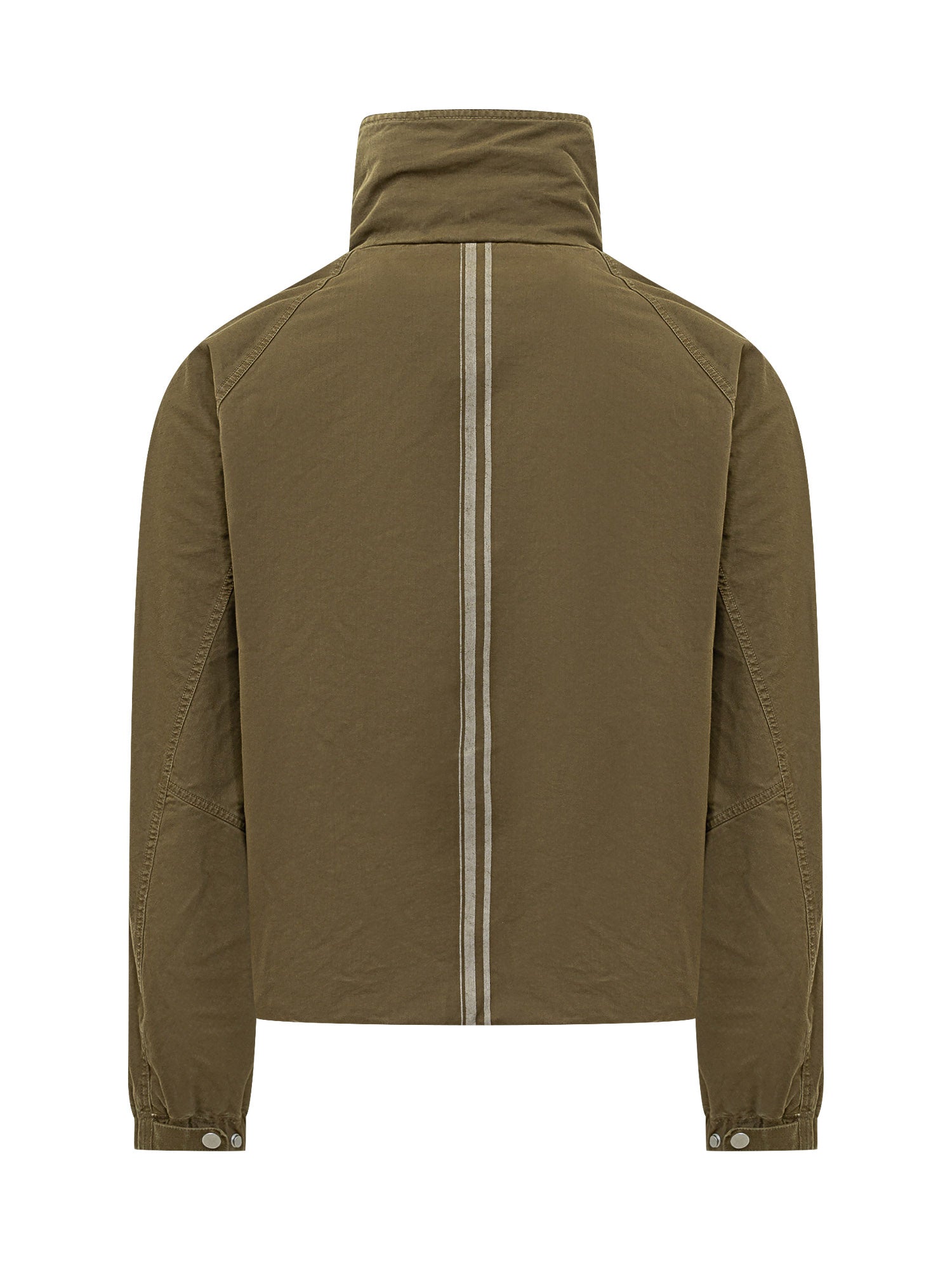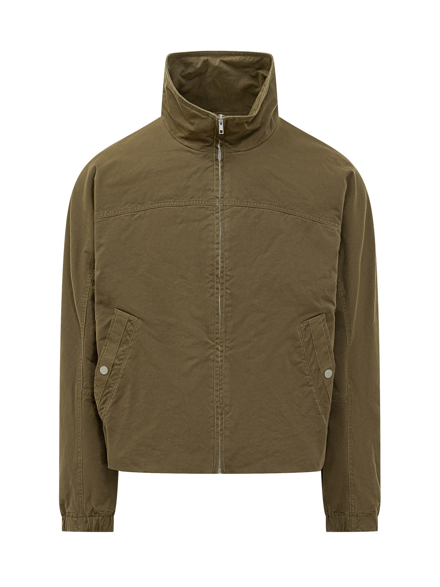 Jacket with front zip closure and high neck. Features side pockets with snap button and elastic cuffs. Cropped design with clean lines and functional structure.