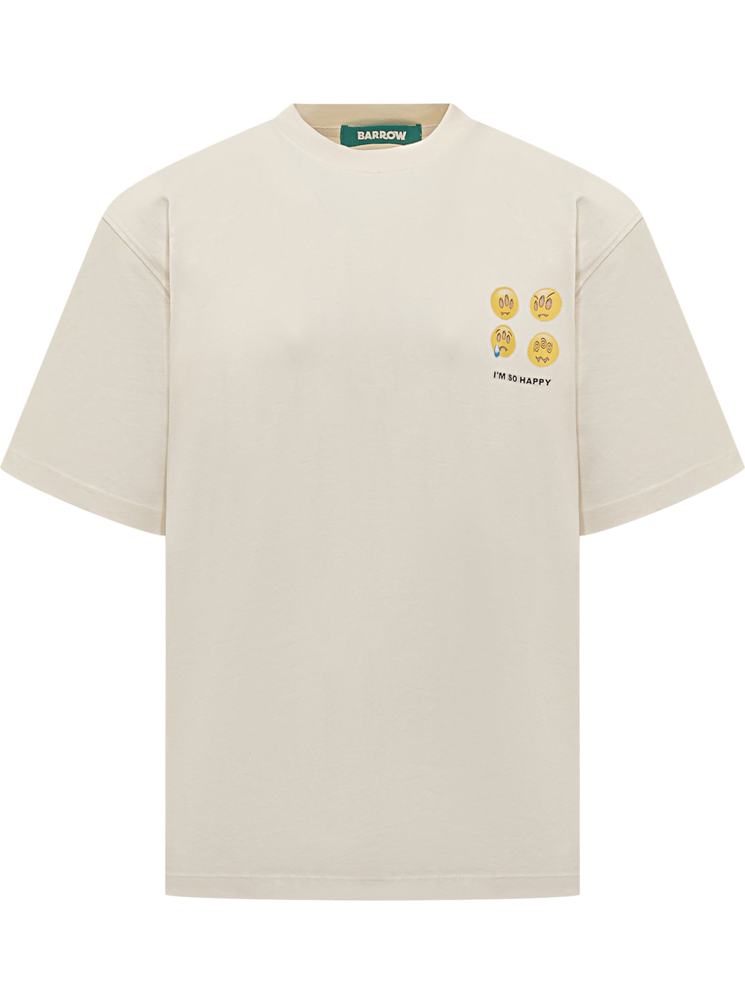 Barrow beige cotton T-shirt with yellow smiley prints and I'm So Happy text on the chest.