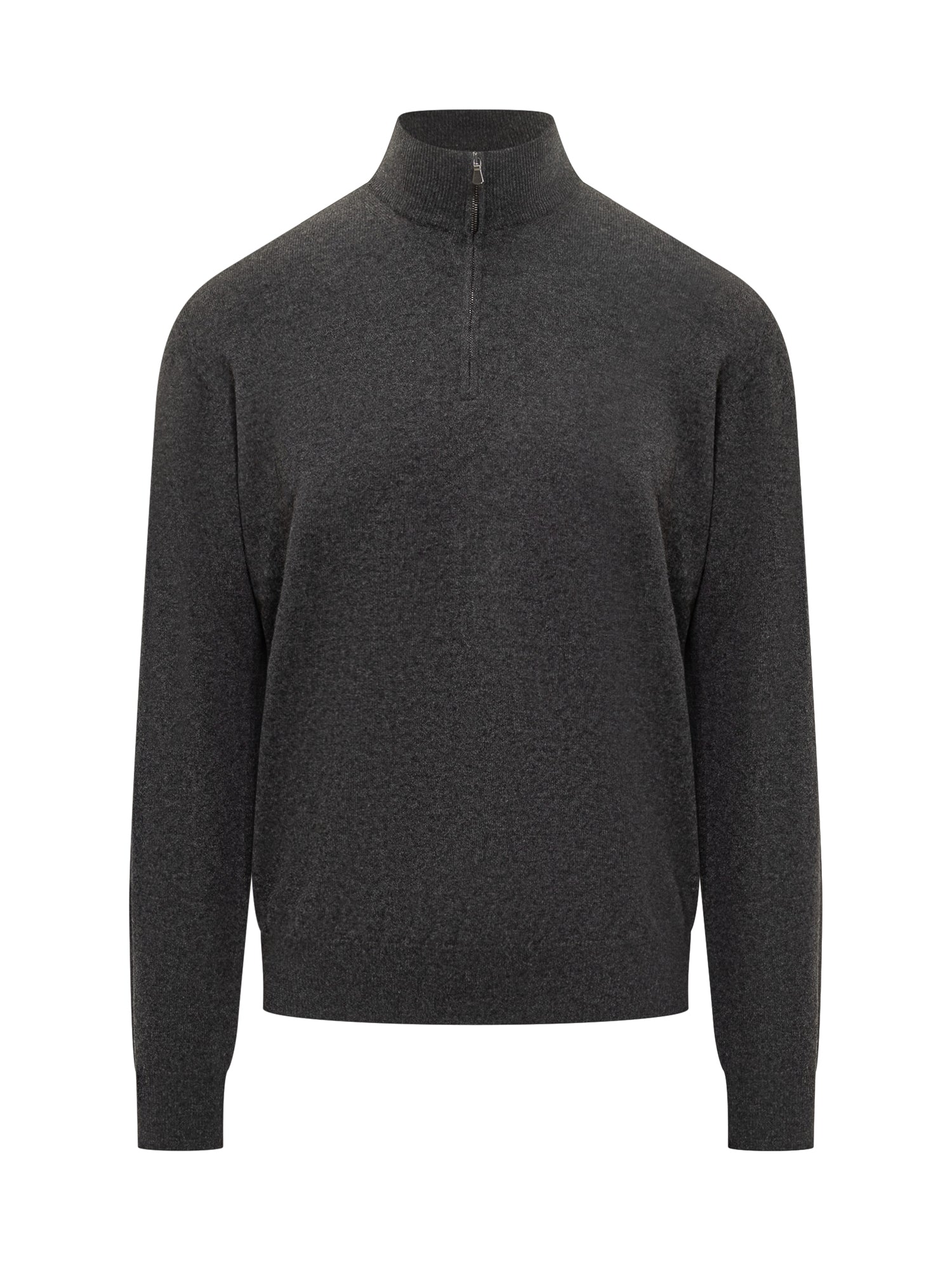 Filippo De Laurentiis wool sweater in grey with high collar and half-zip.