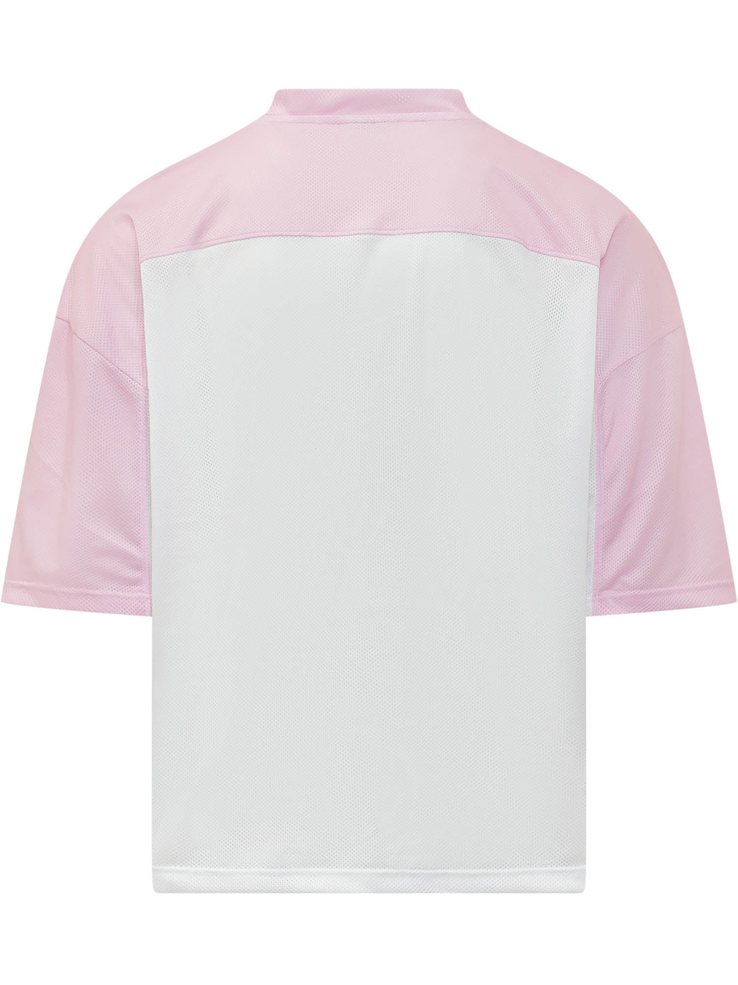Short-sleeve T-shirt with crew neck and perforated front panel. Tone on tone front lettering print and horizontal seam detail on the chest. Straight cut with a sporty attitude.