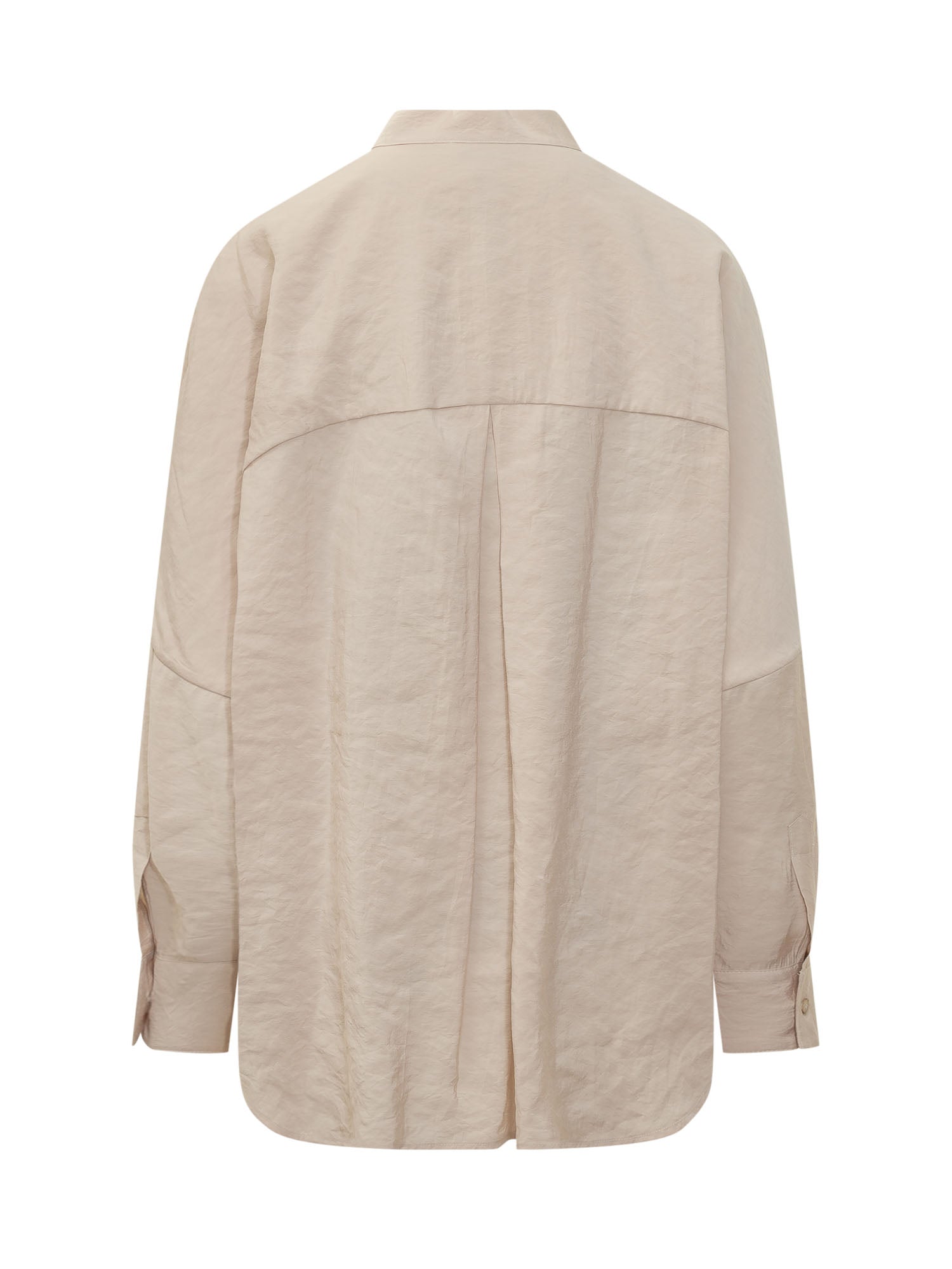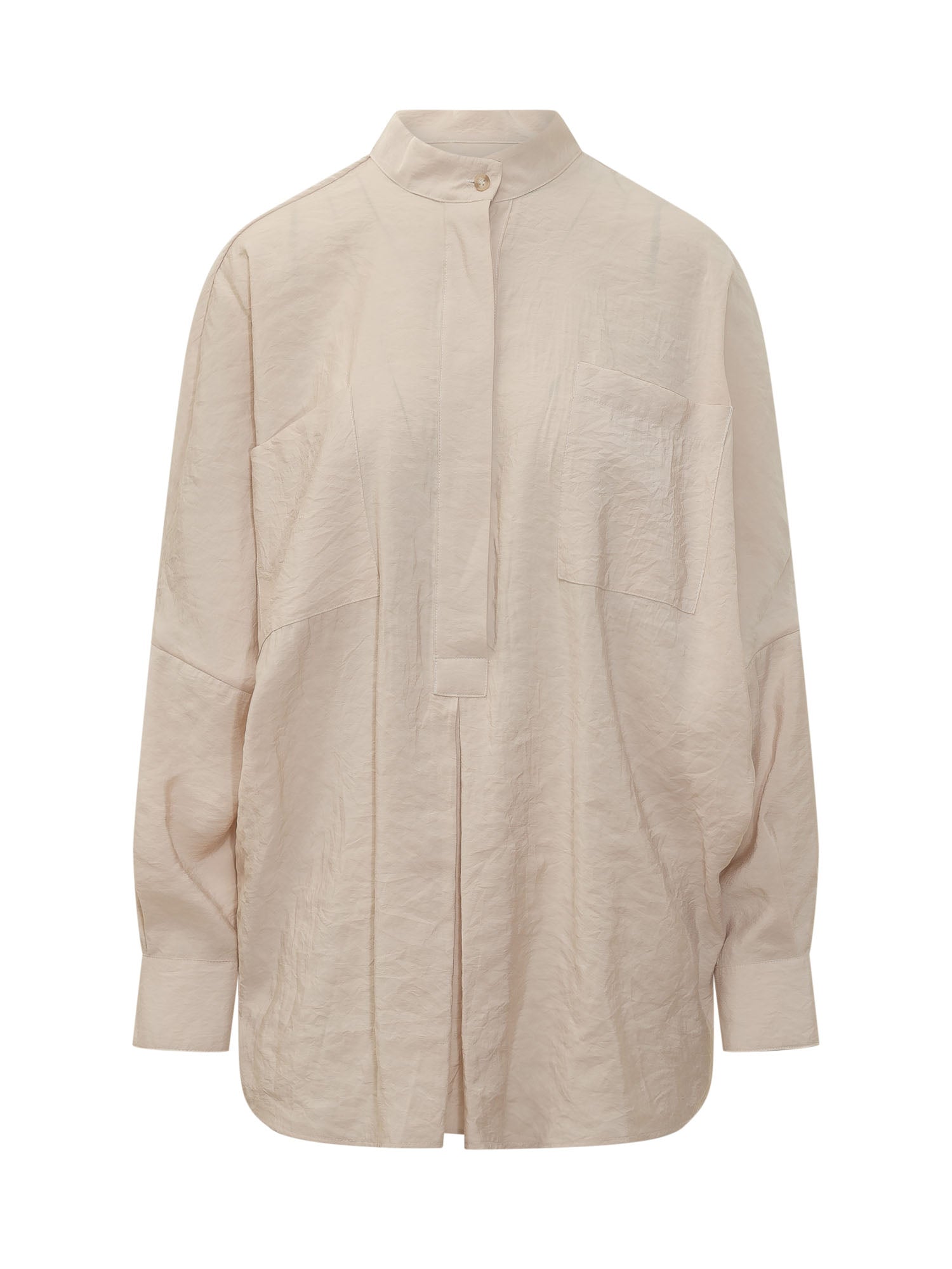 Oversized long sleeve shirt with mandarin collar, soft silhouette and front closure