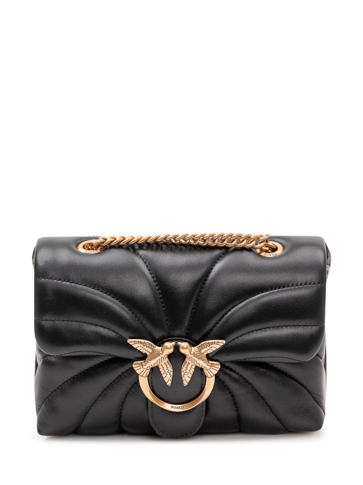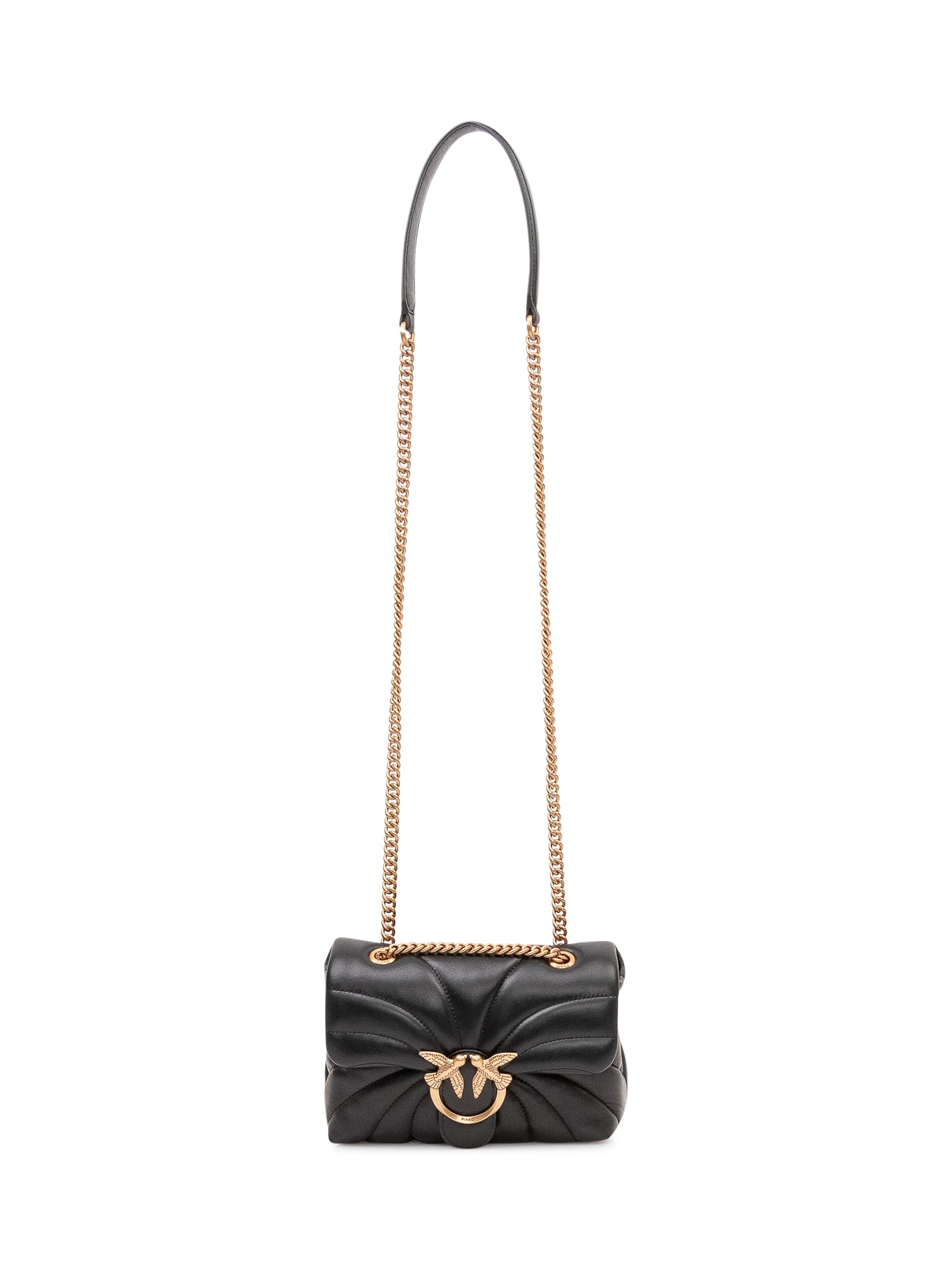 Mini bag with front flap, buckle closure and chain shoulder strap