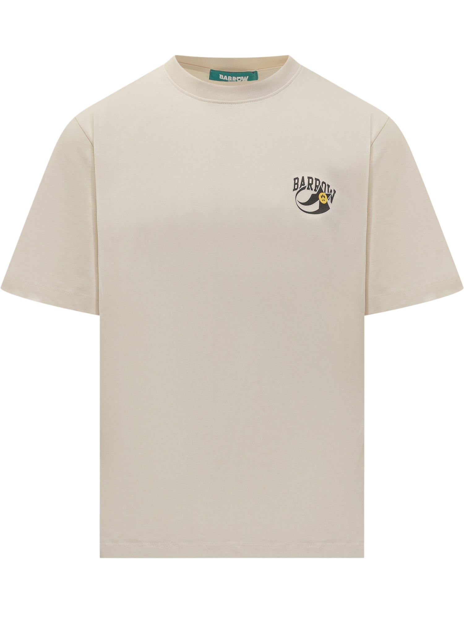 Barrow beige cotton short-sleeve T-shirt featuring curved logo and small yellow emoji on the chest.