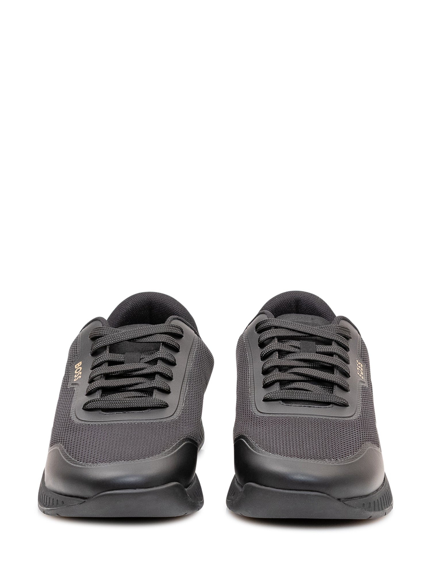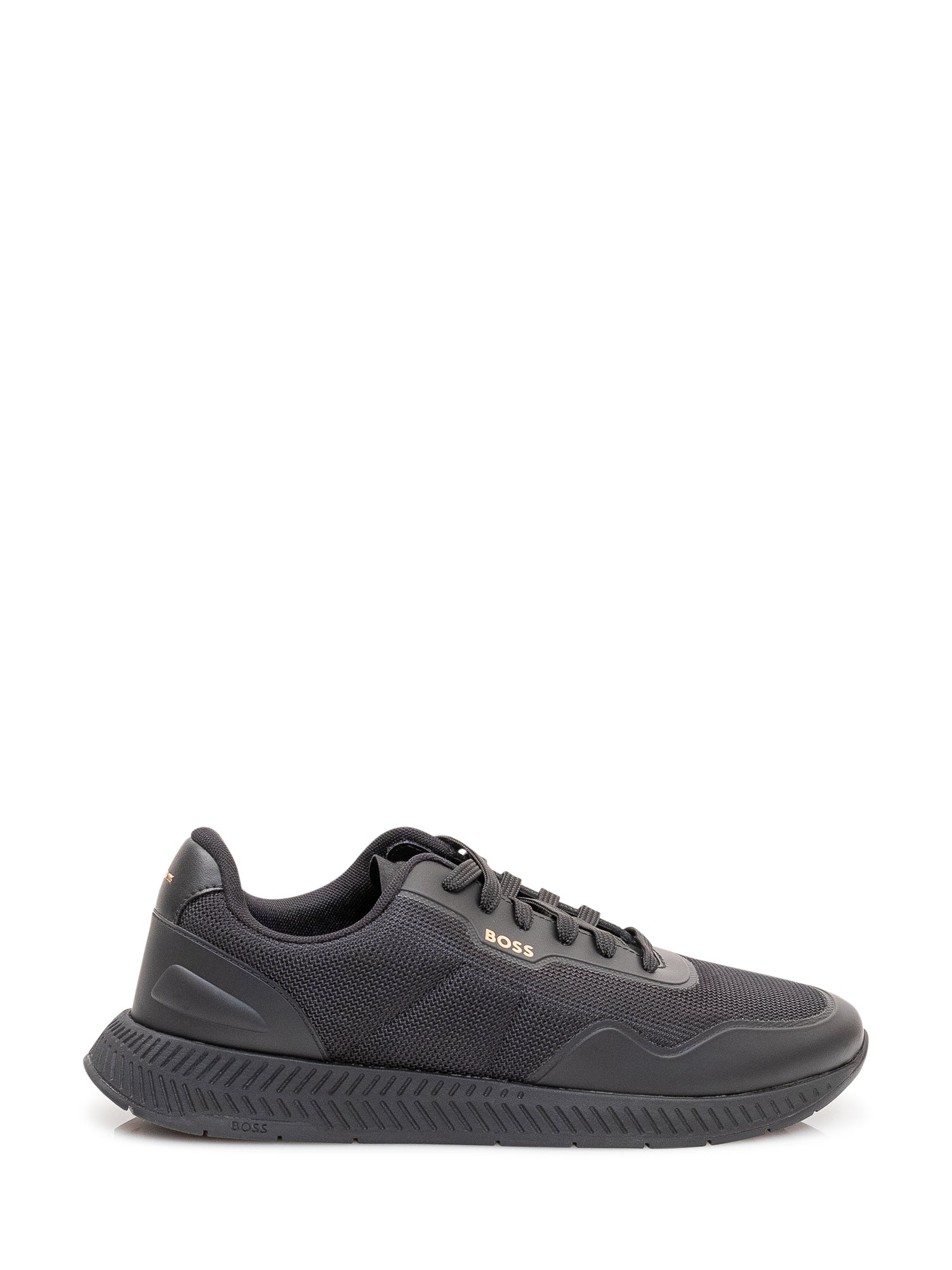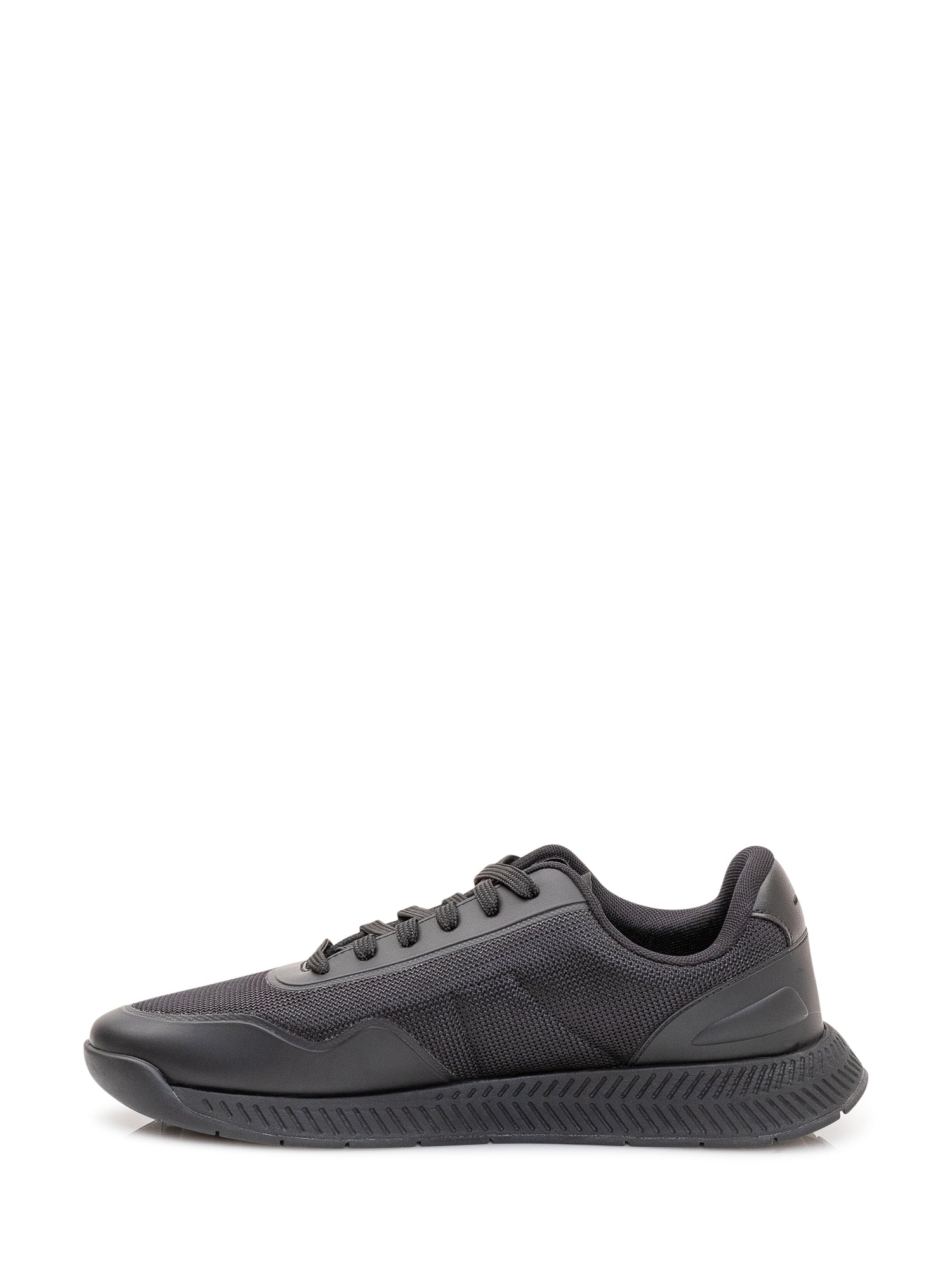 Low top sneakers with front lace up closure, panelled structure and shaped sole, sporty and functional design