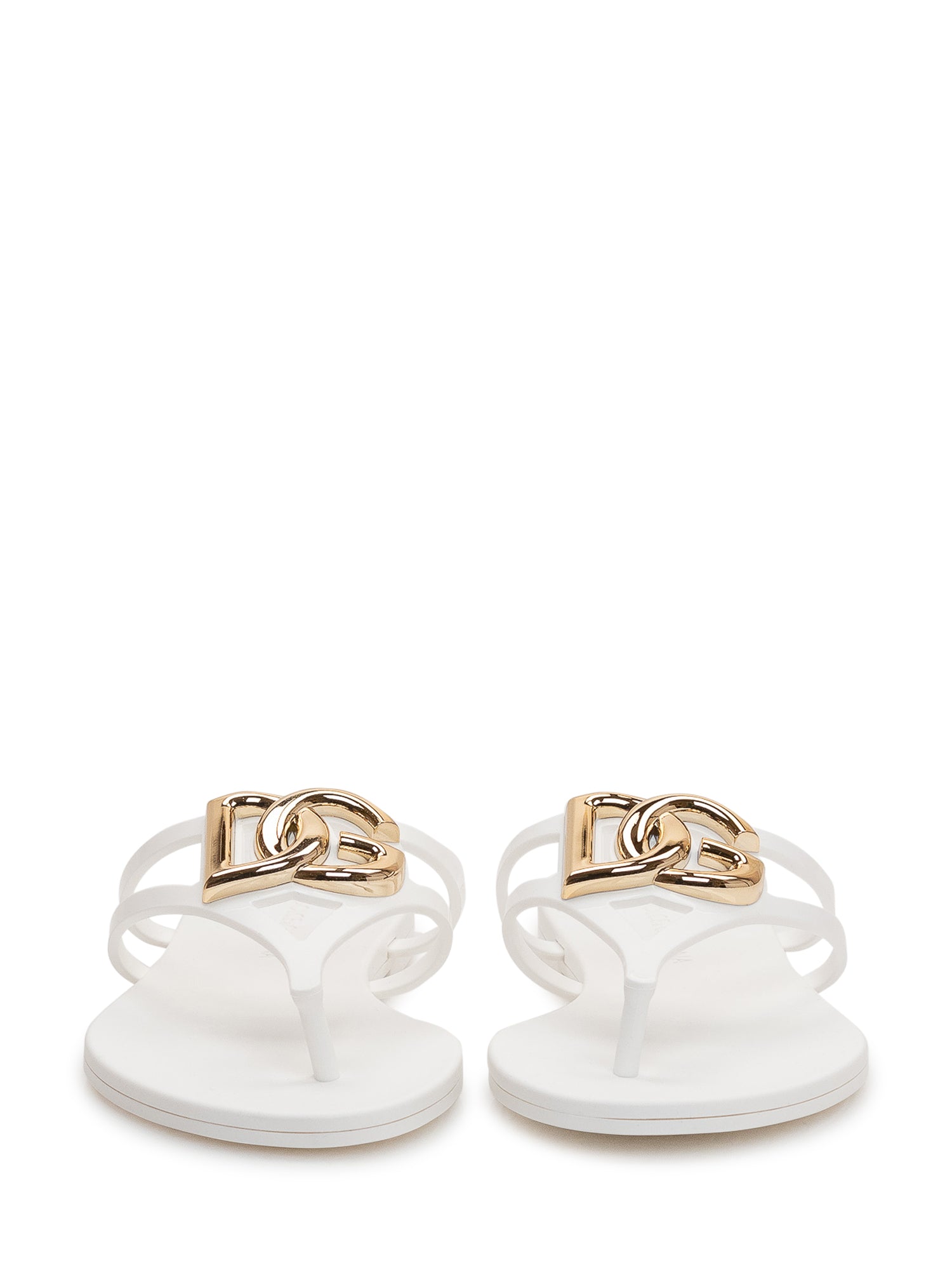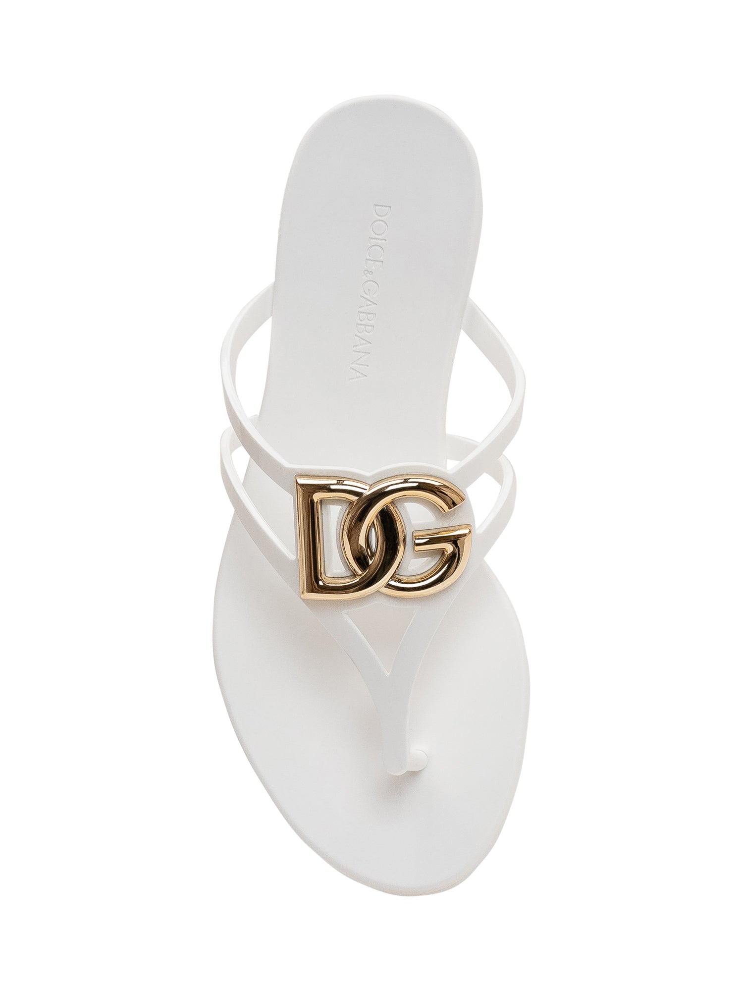 Rubber flip-flop with a clean design, featuring interwoven straps and a decorative detail.