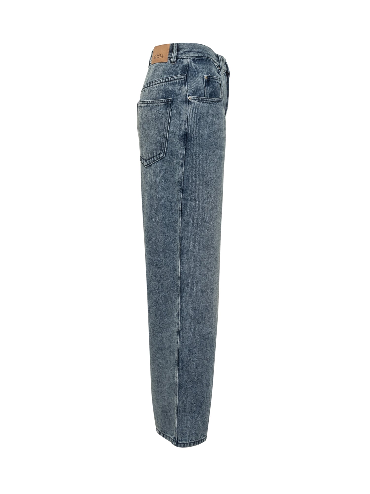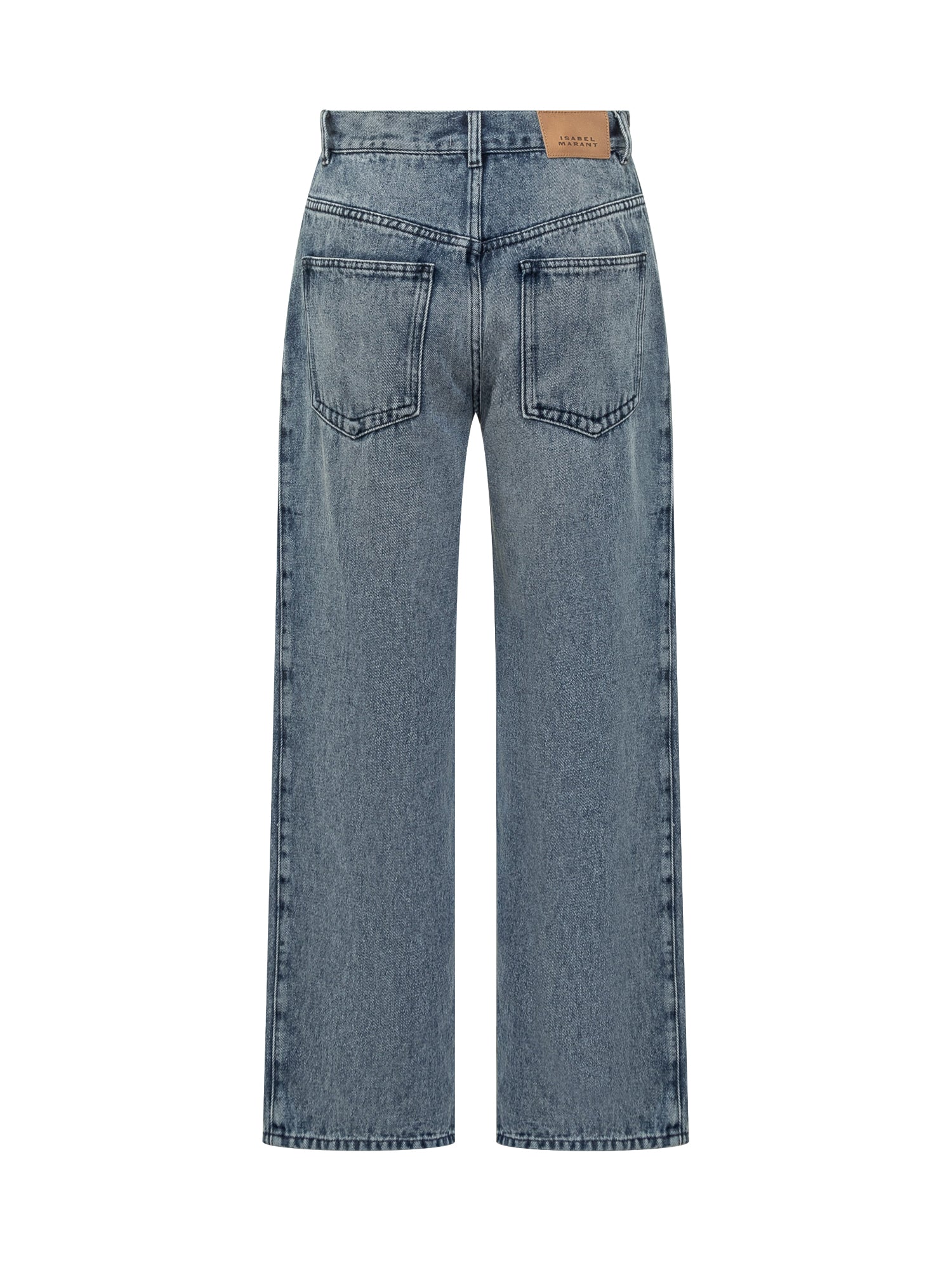 Isabel Marant straight-leg jeans in washed blue denim with high waist and center seams.