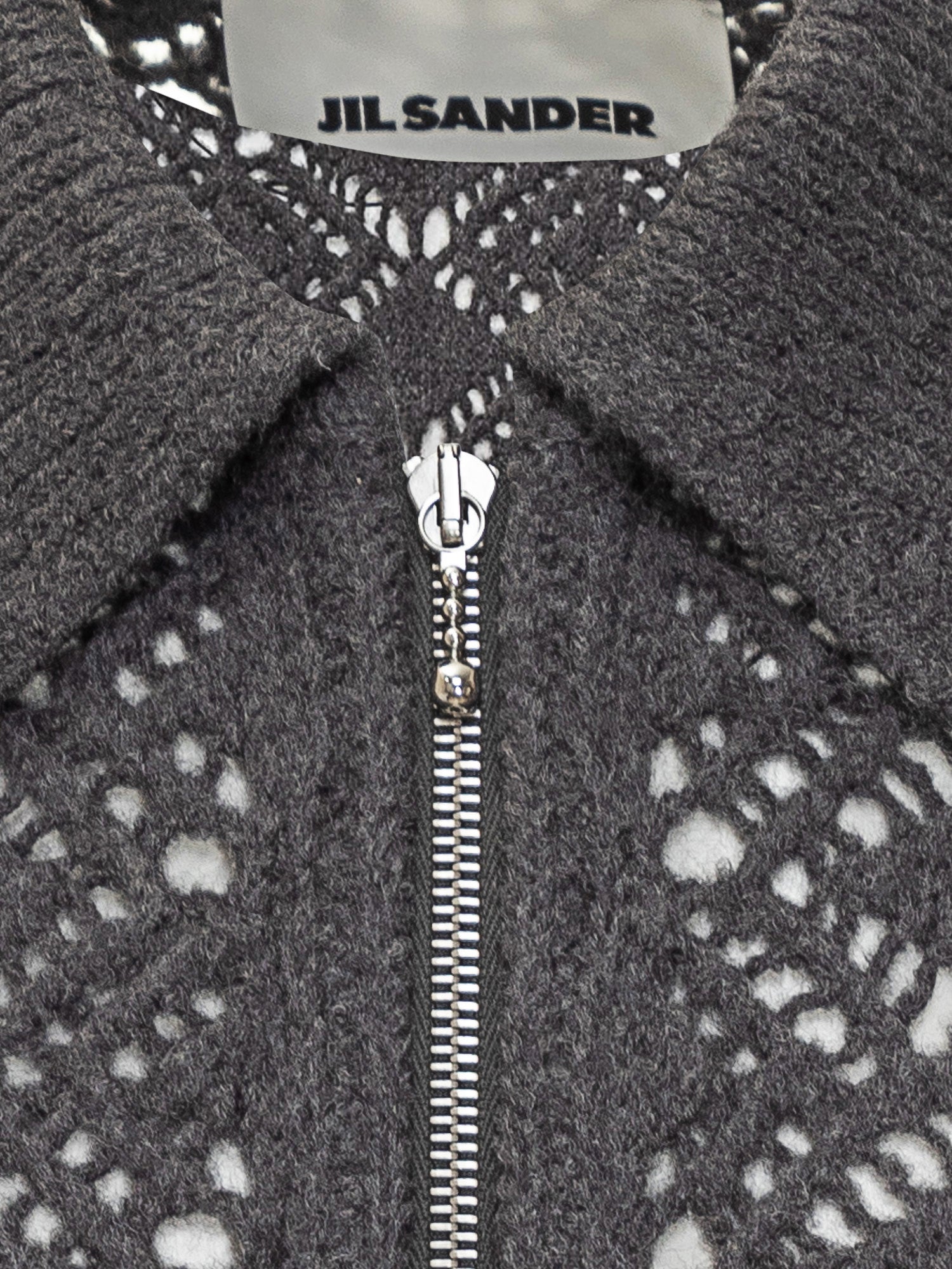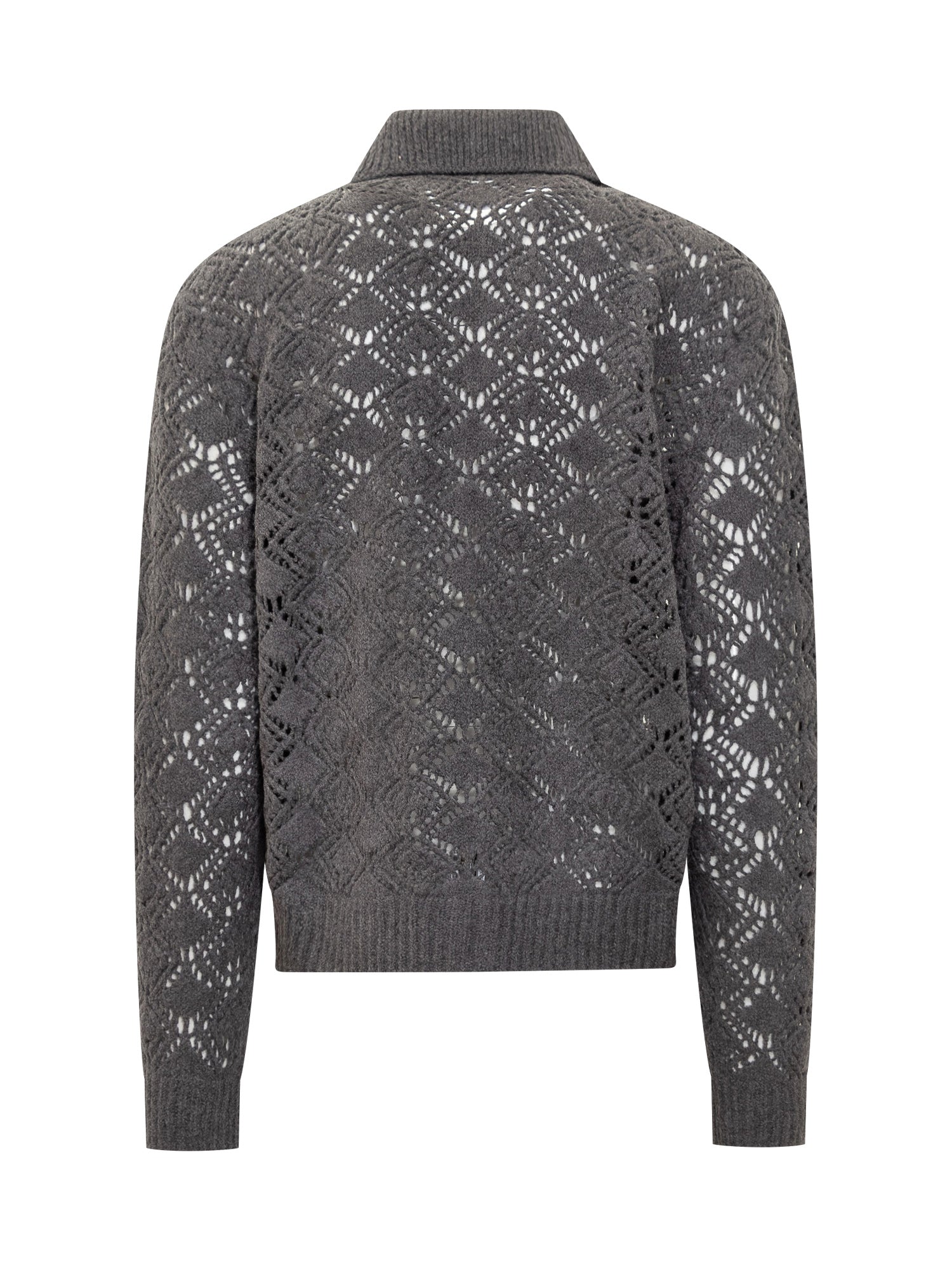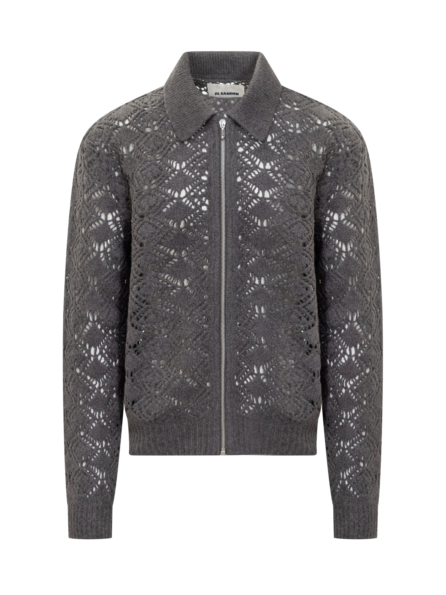 Wool knit jacket with elegant openwork pattern, classic collar and front zip.
