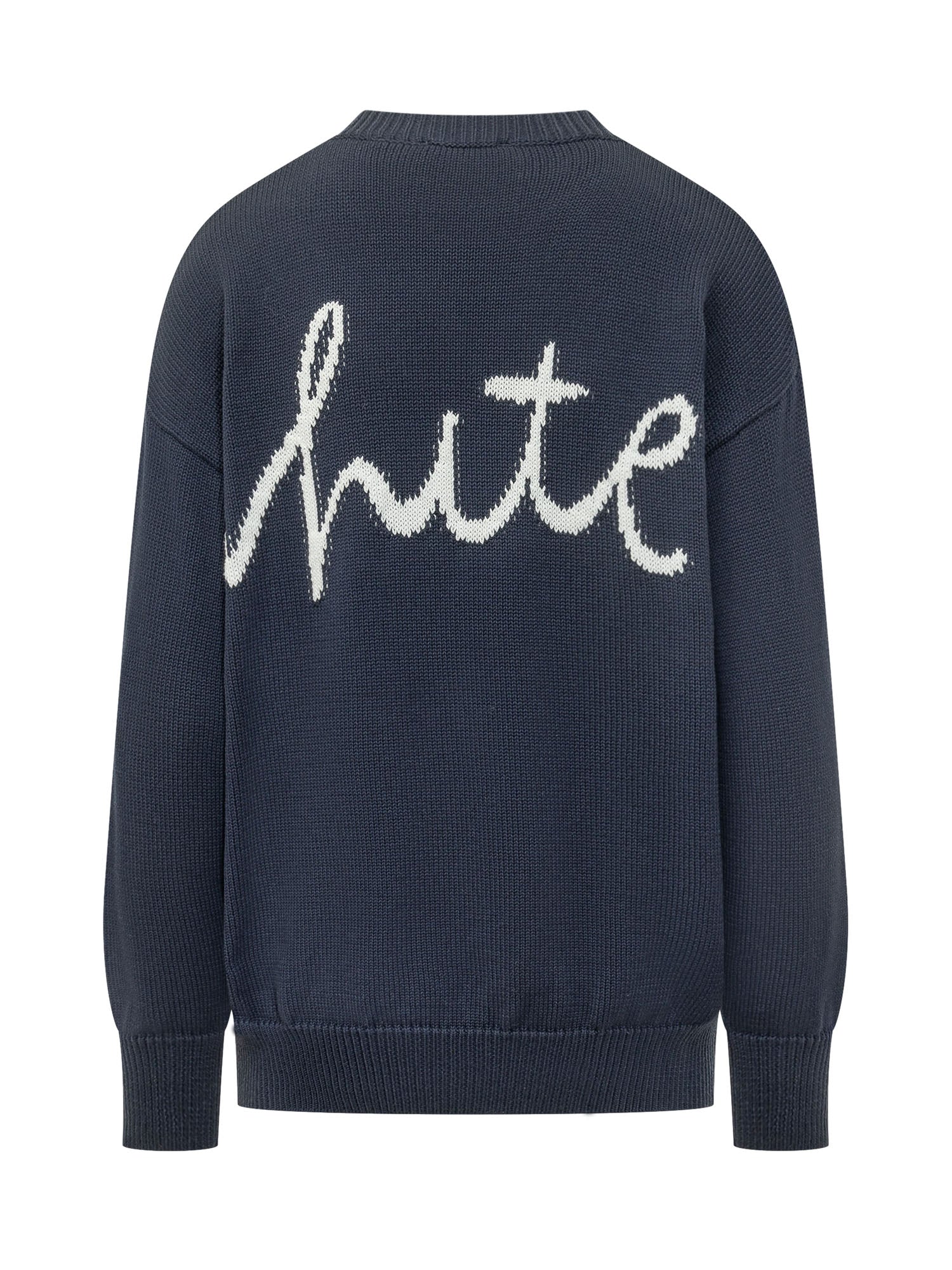Crewneck sweater in soft knit with contrasting graphic logo on front and back. Relaxed fit with long sleeves and ribbed trims.
