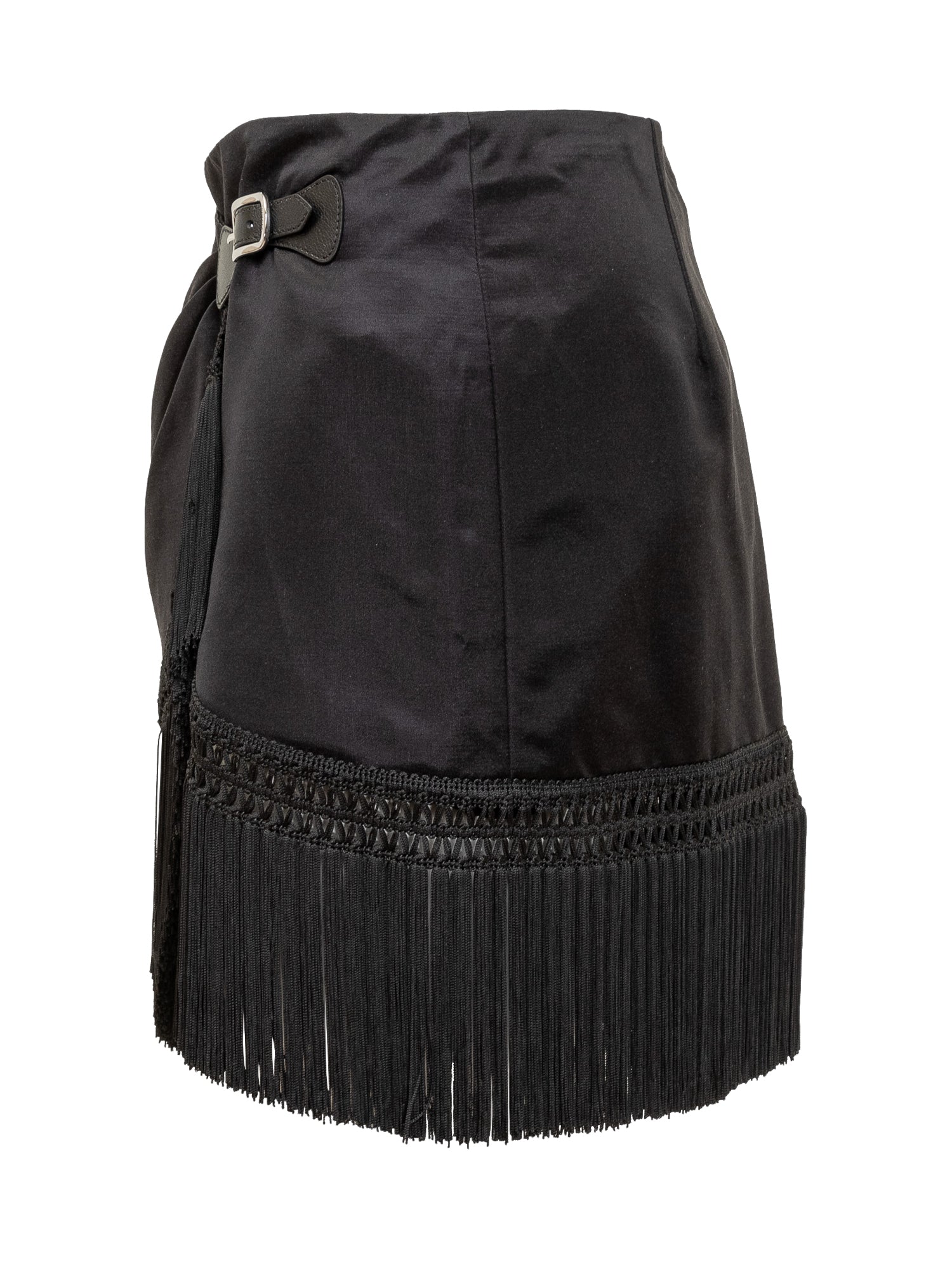 Button fastening. Embroidery and fringe detail.