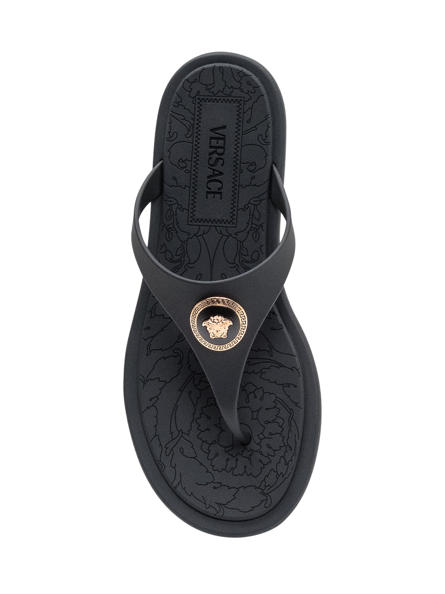 Rubber flip-flops featuring a signature Medusa detail.