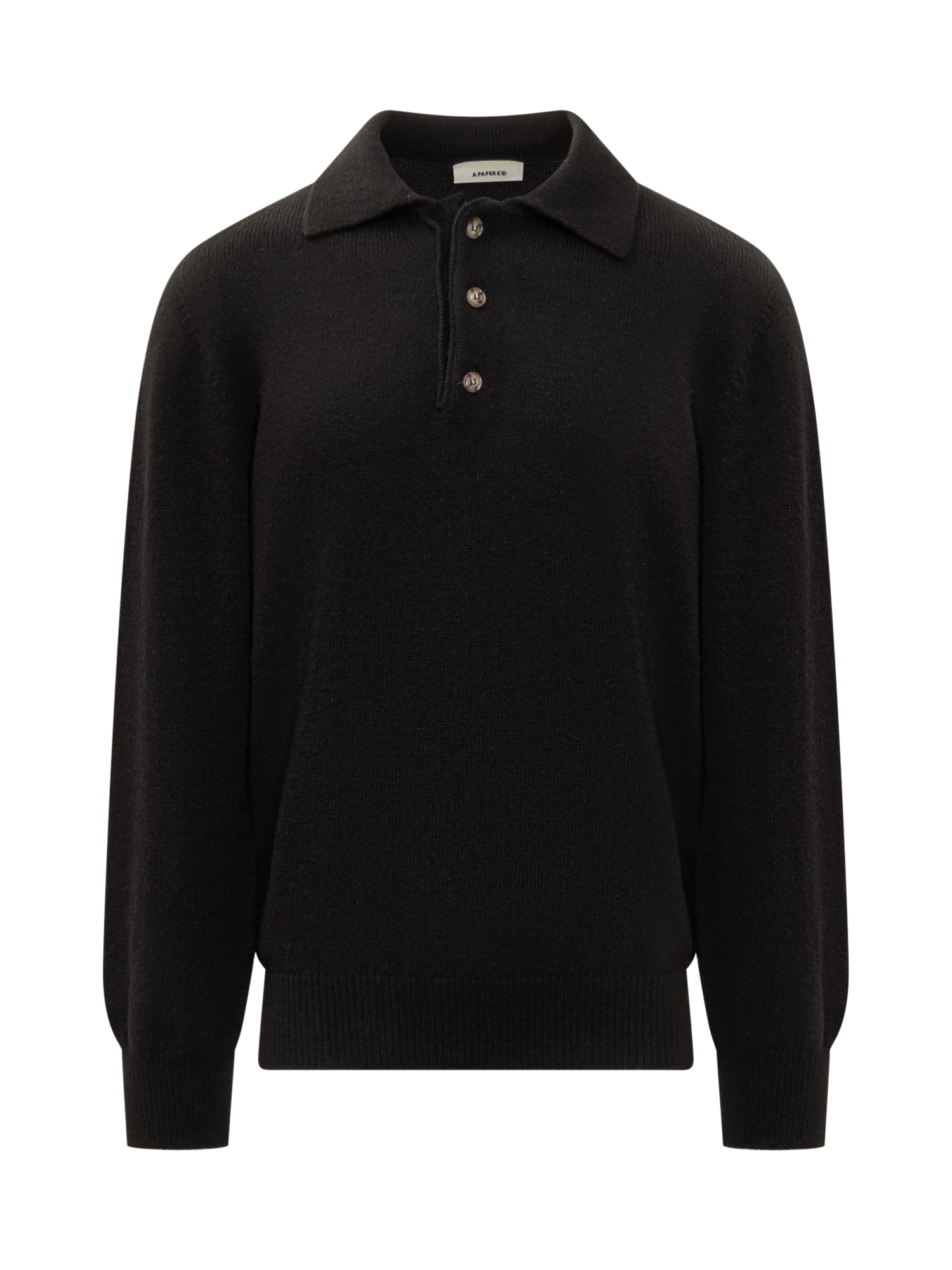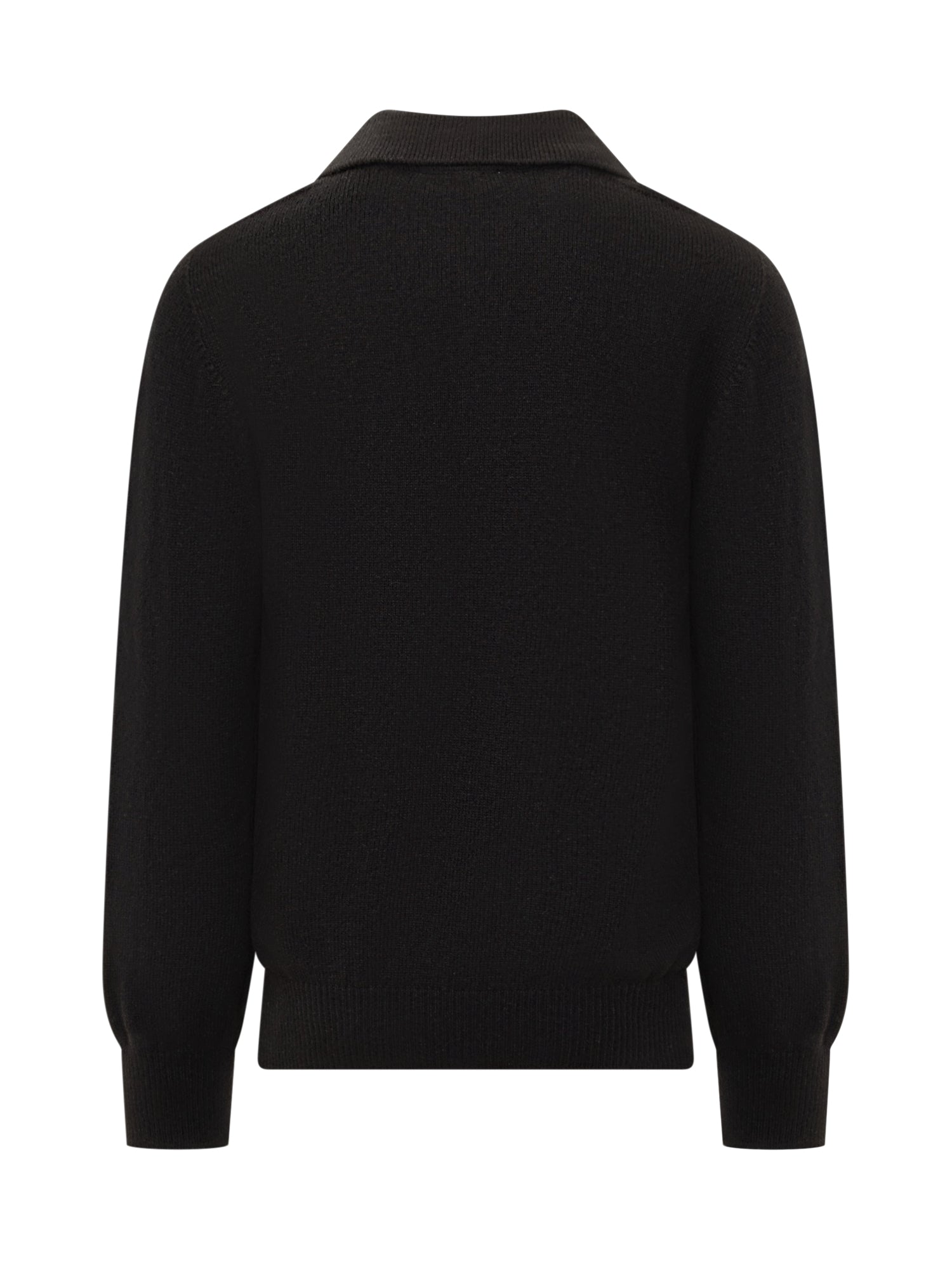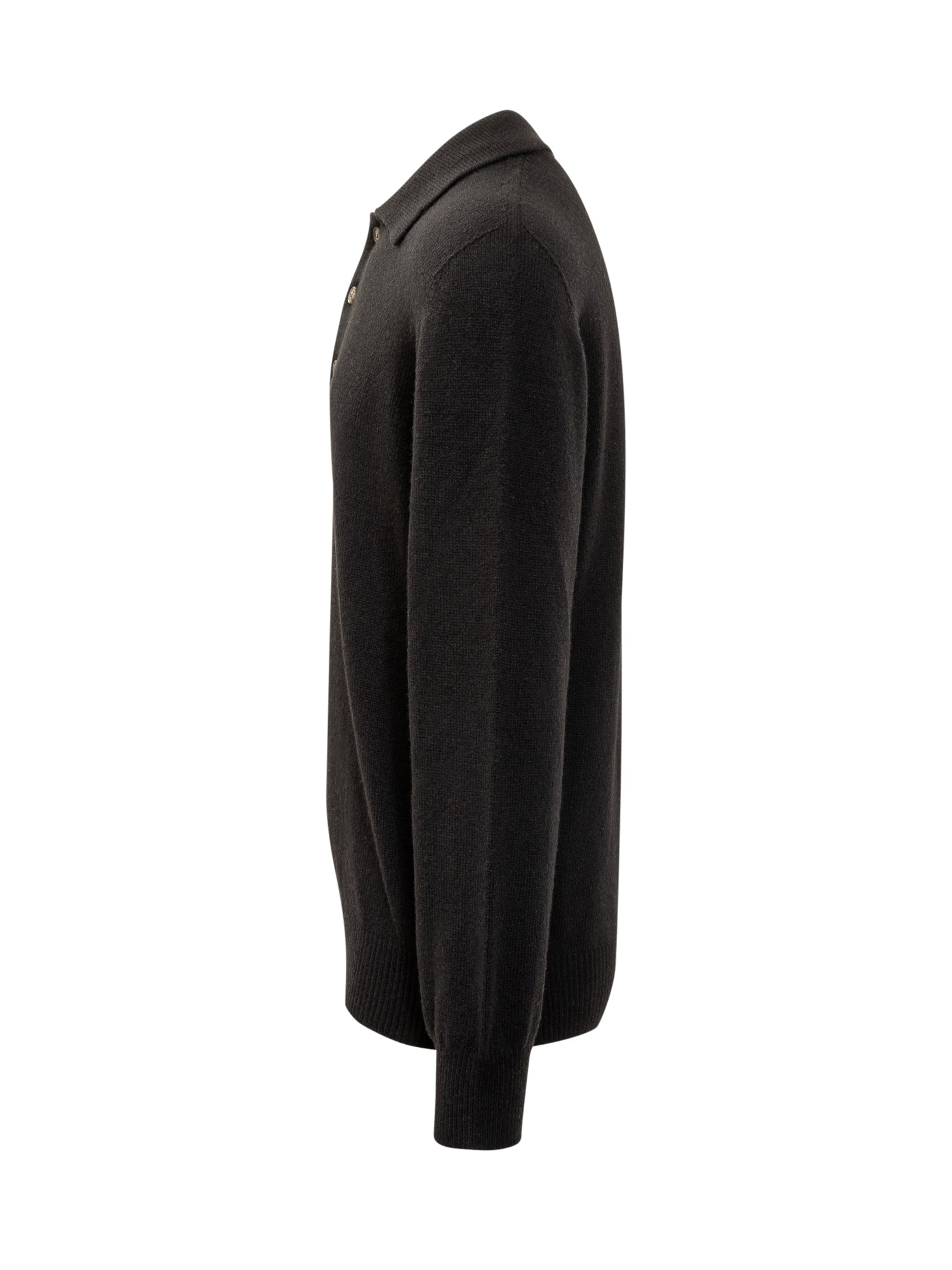 A Paper Kid black wool polo sweater with long sleeves and three-button closure.