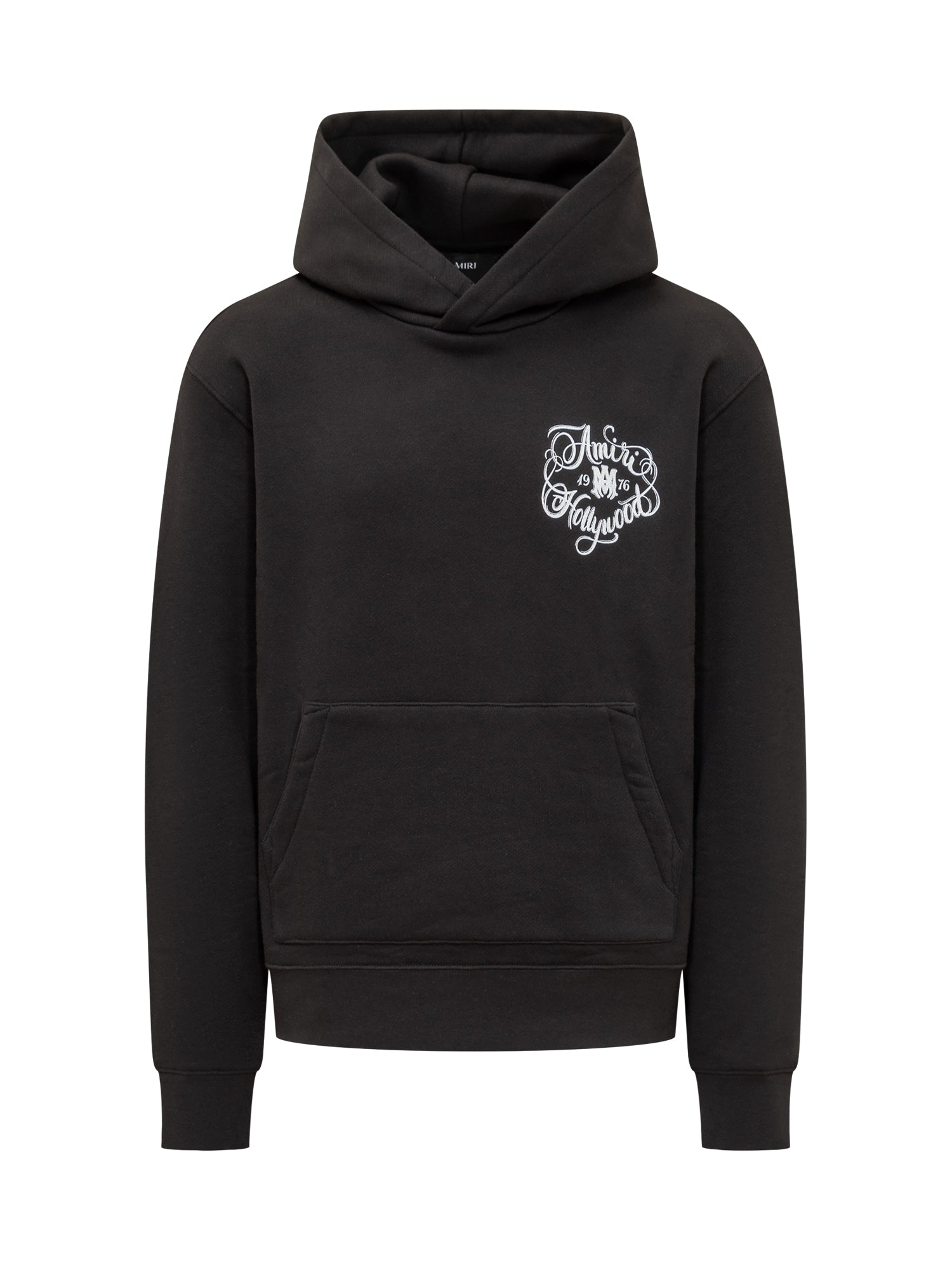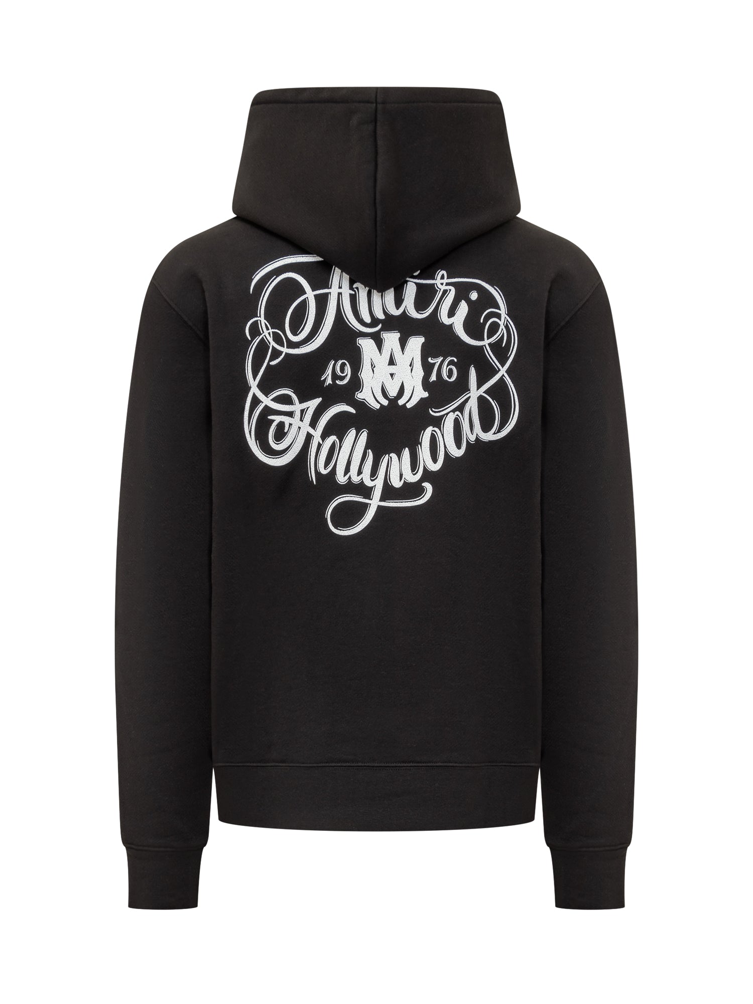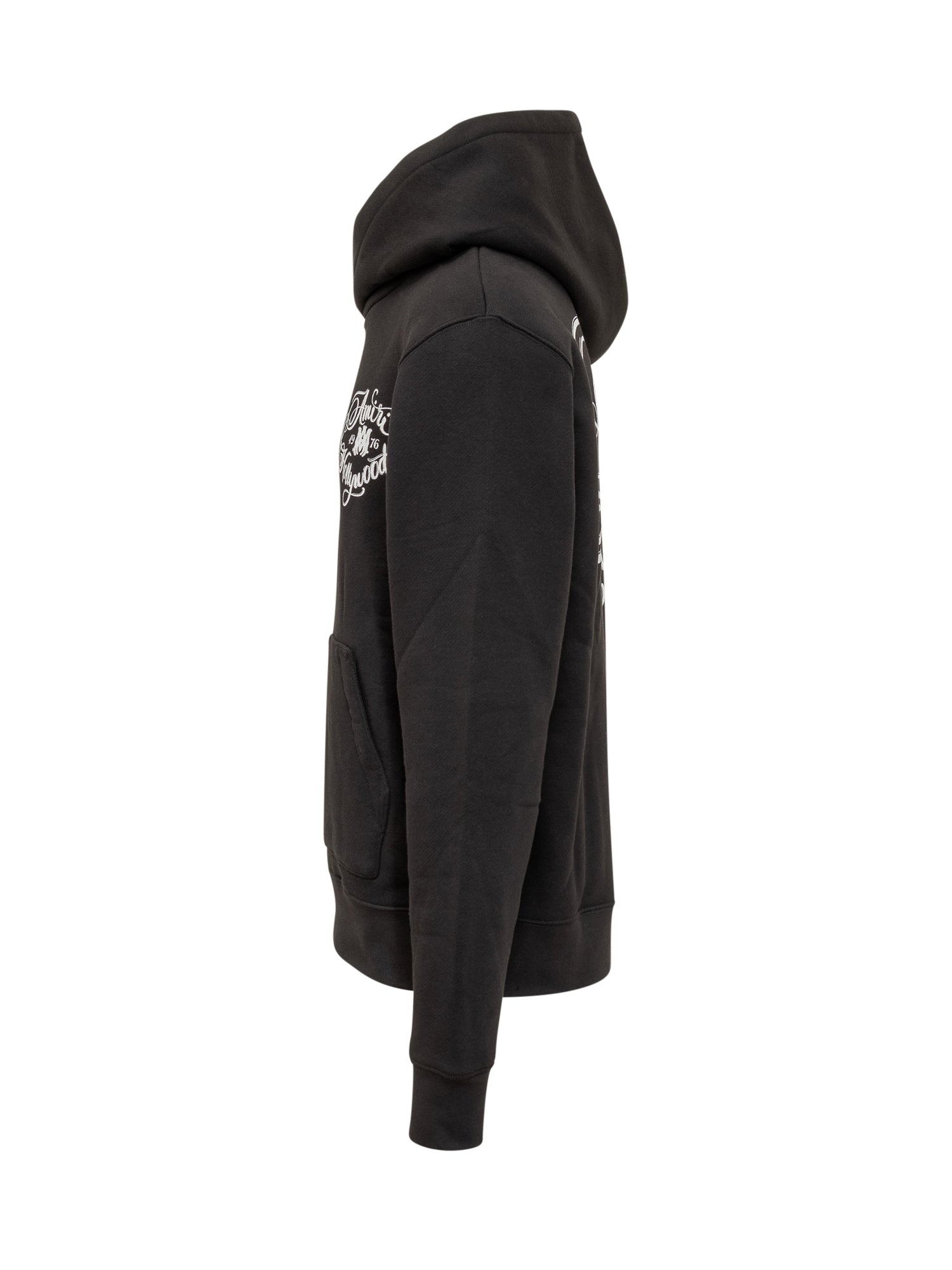 Long-sleeve cotton hoodie with front calligraphic graphic, hood and kangaroo pocket.