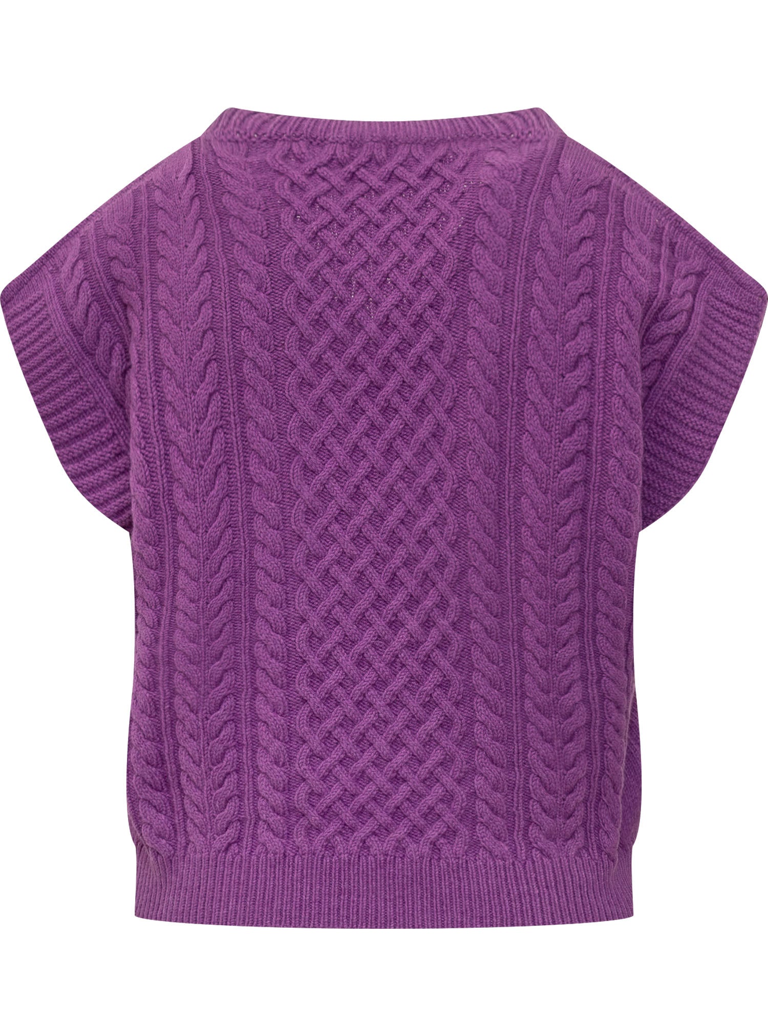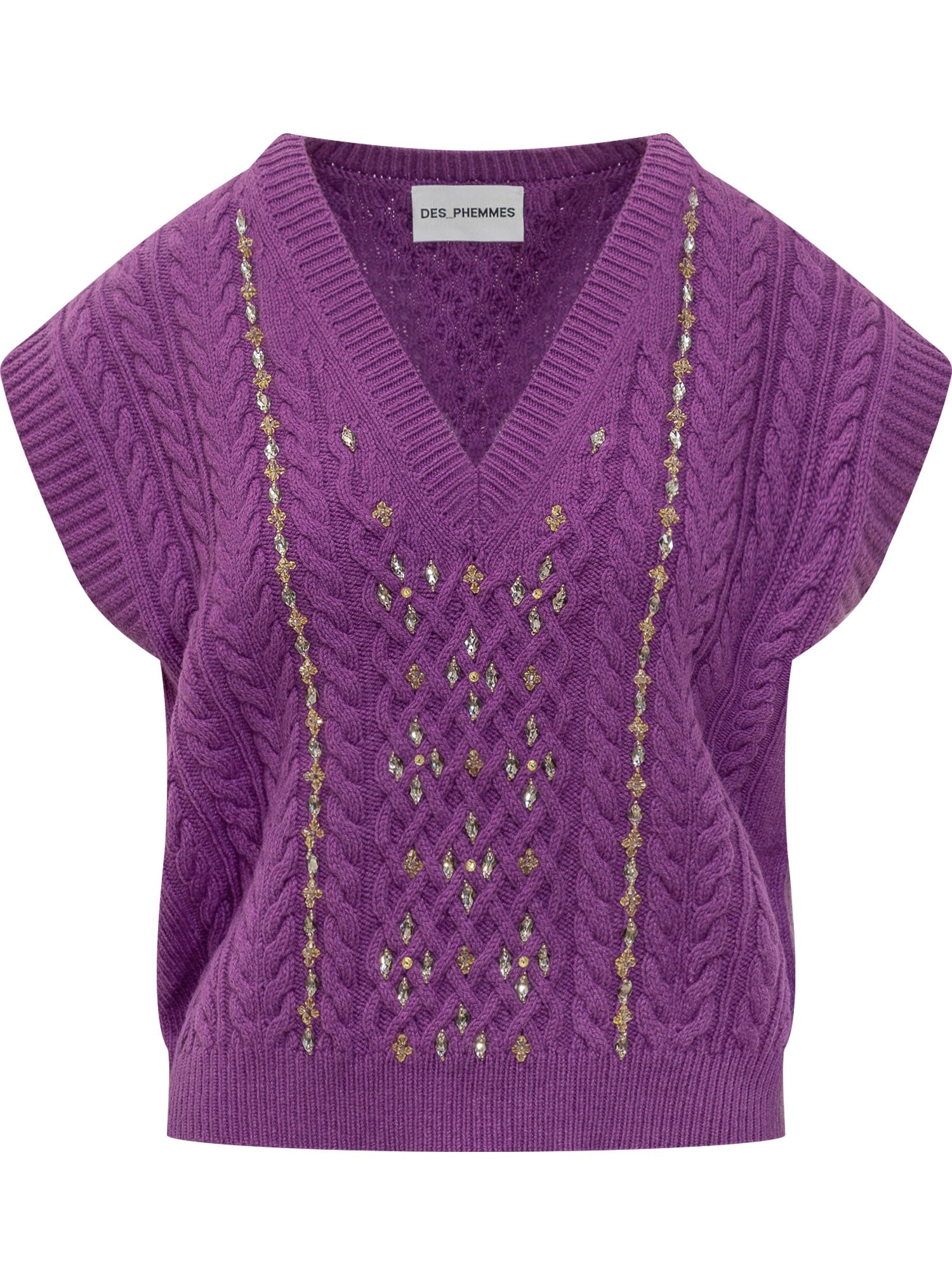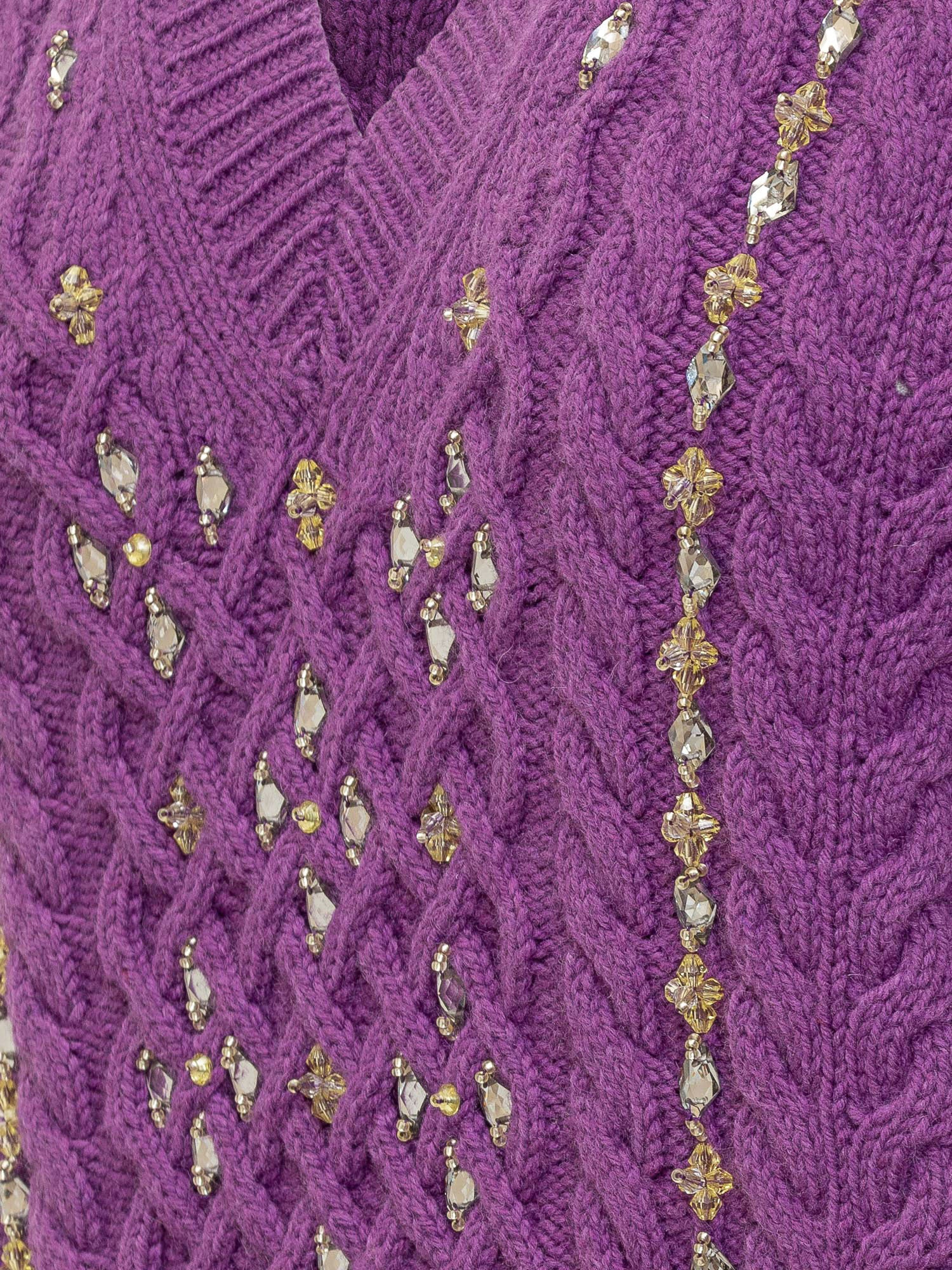 Lilac cable-knit vest by Des Phemmes with jewel embellishments.