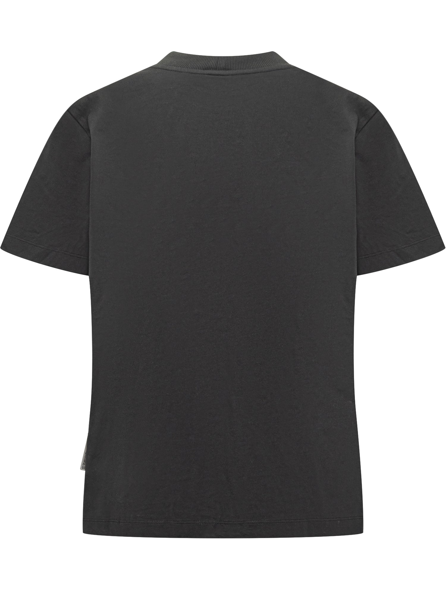 Black cotton Des Phemmes t-shirt embellished with jewel details, pearls, and feather applications.