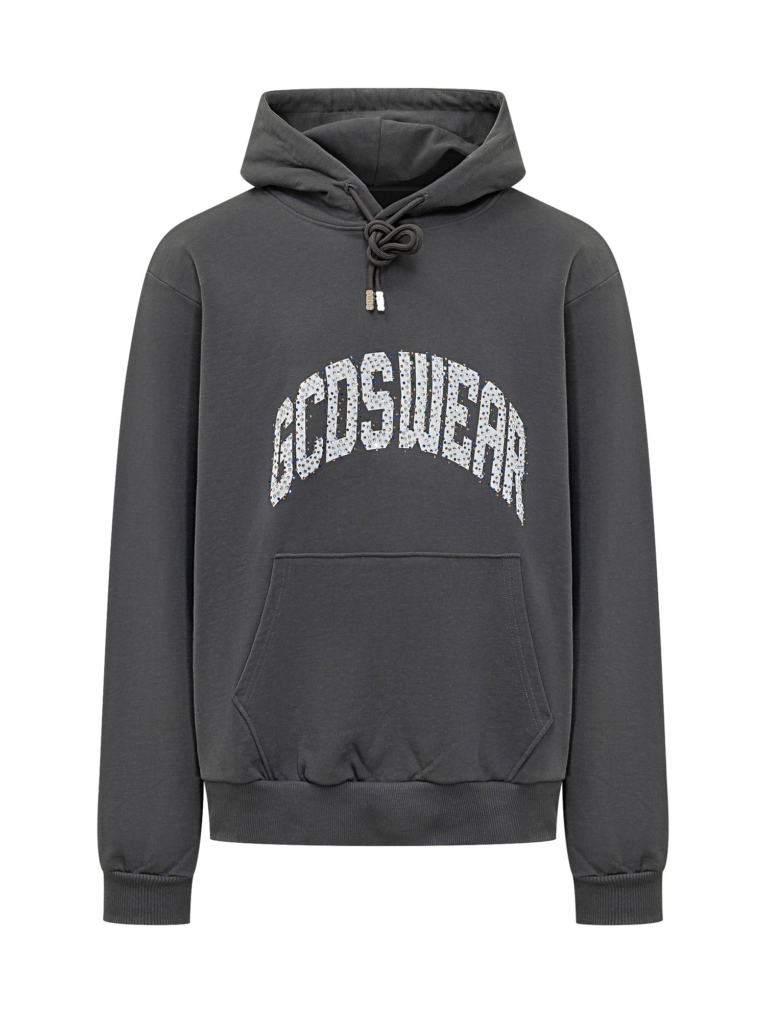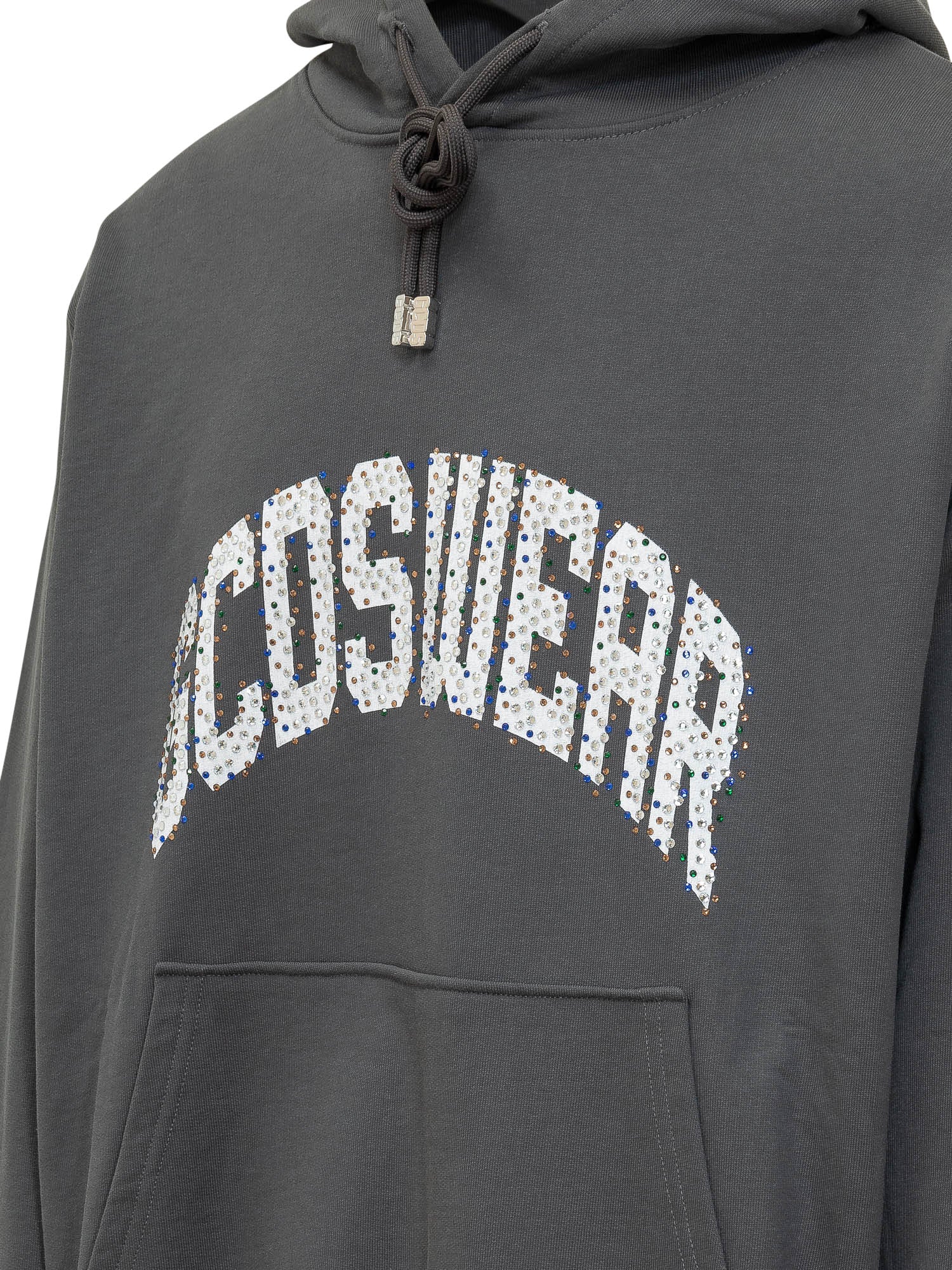 Hoodie with adjustable drawstring hood and front kangaroo pocket. Front lettering print enhanced with decorative applications. Ribbed cuffs and hem for a defined fit.