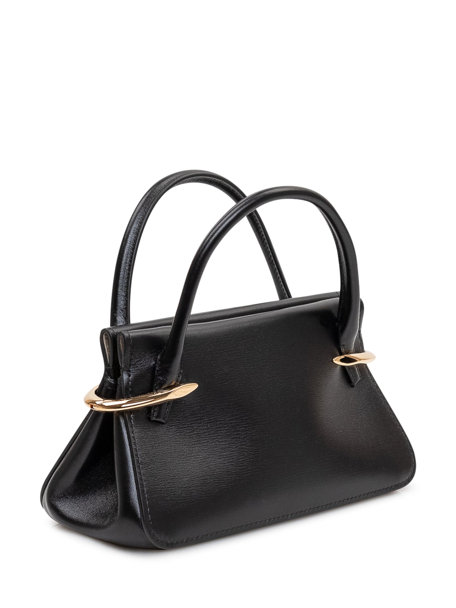 Structured mini bag with double top handles and side metal details. Compact design with defined profile and smooth finish. Ideal to complete elegant looks.