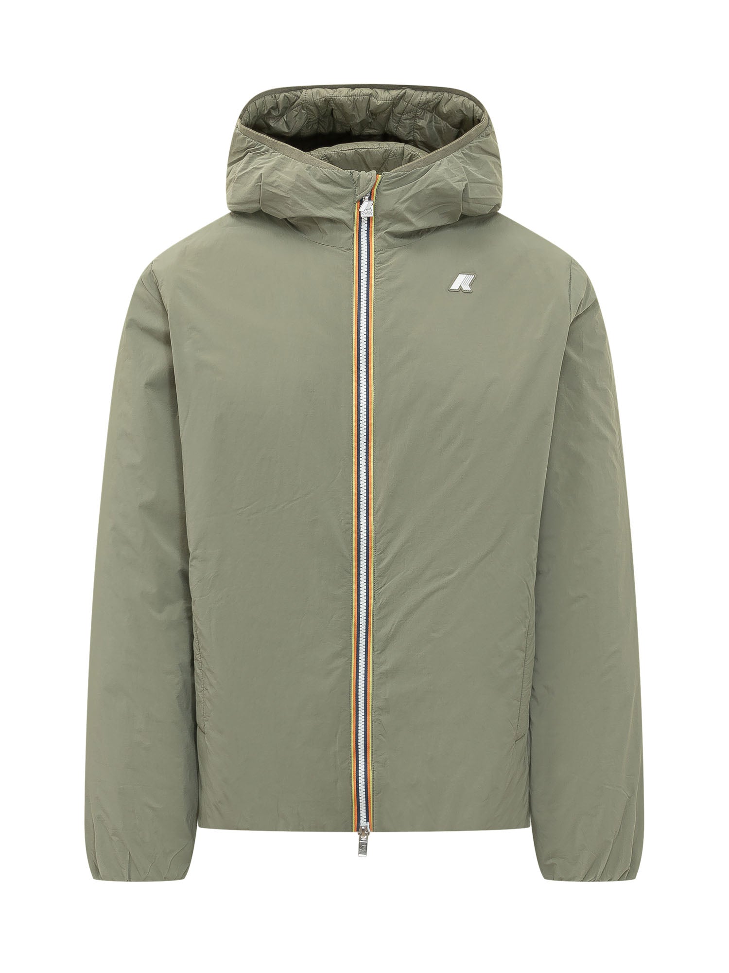 Jacket with hood and front double zip closure. Side pockets and applied logo on the chest. Regular silhouette with functional structure suitable for colder days.