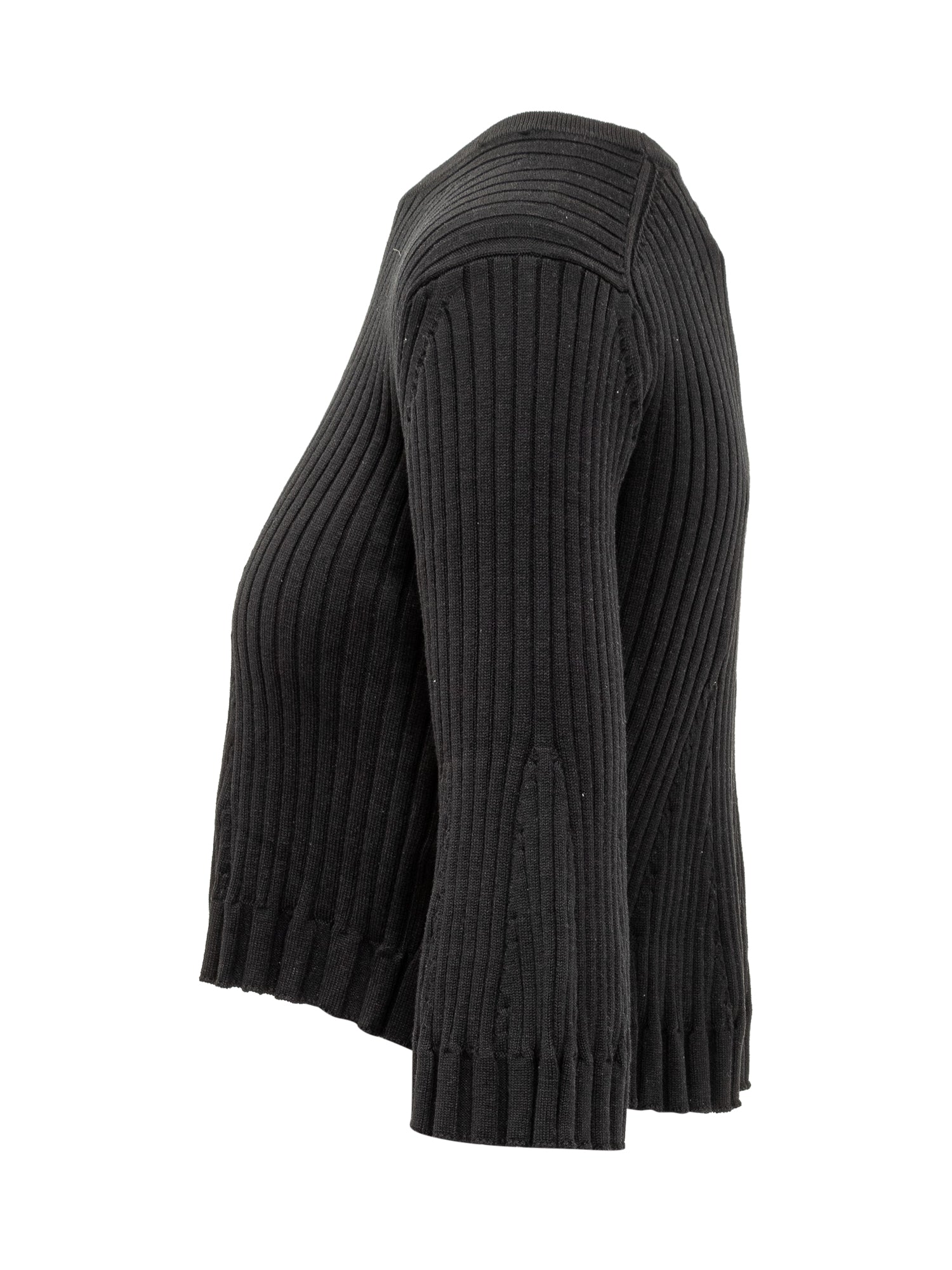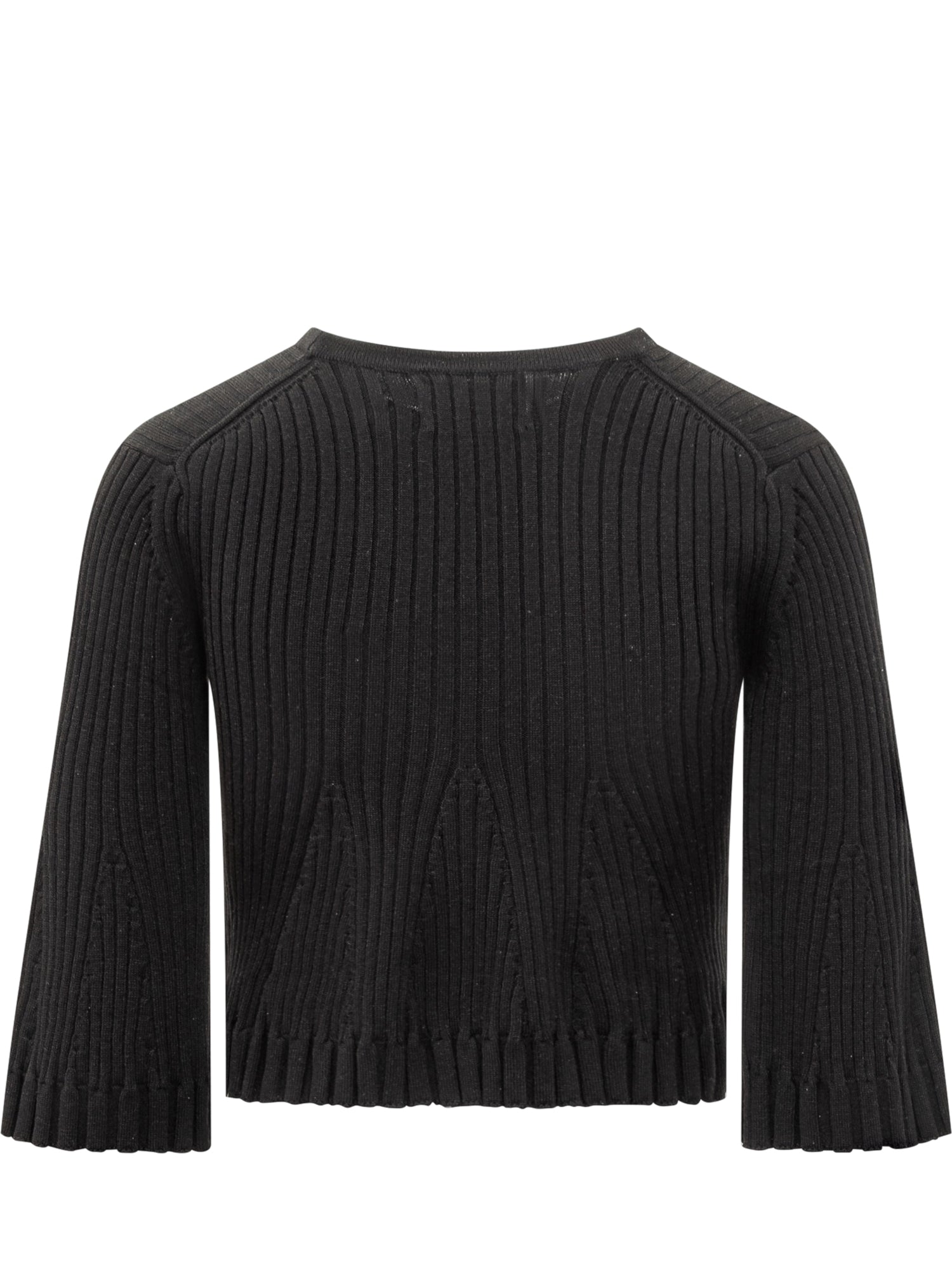 Silk and cotton blend top with long sleeves. Cropped. Crew neck. Ribbed hems. Stretch ribbed knit.
