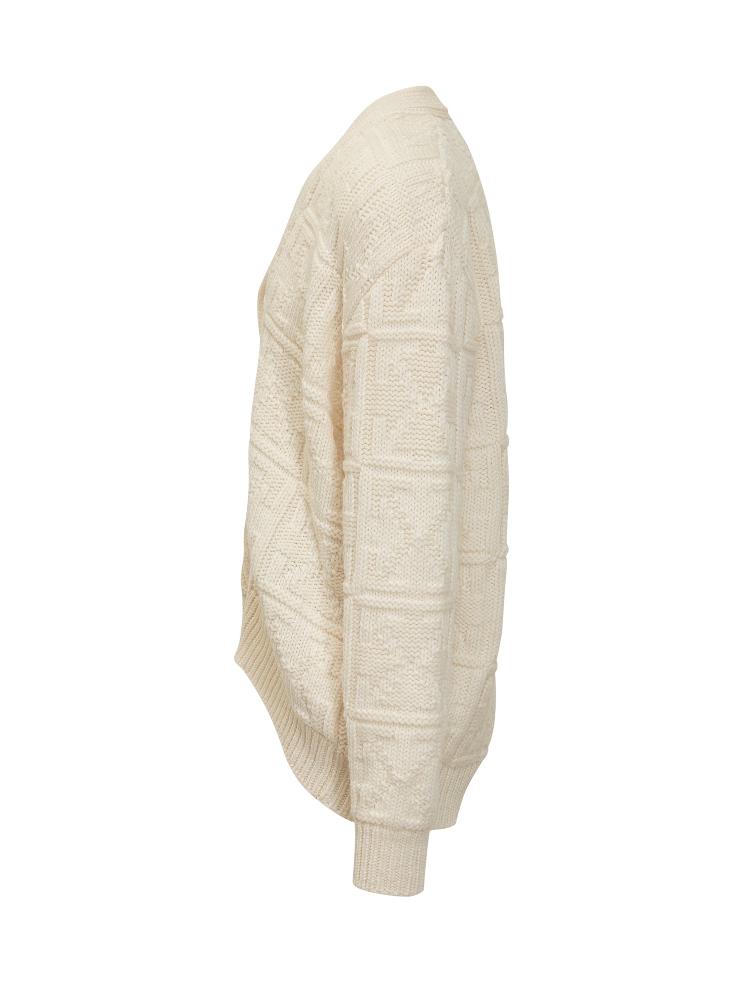 Off-White white wool cardigan featuring knitted pattern and contrasting Arrow logo.