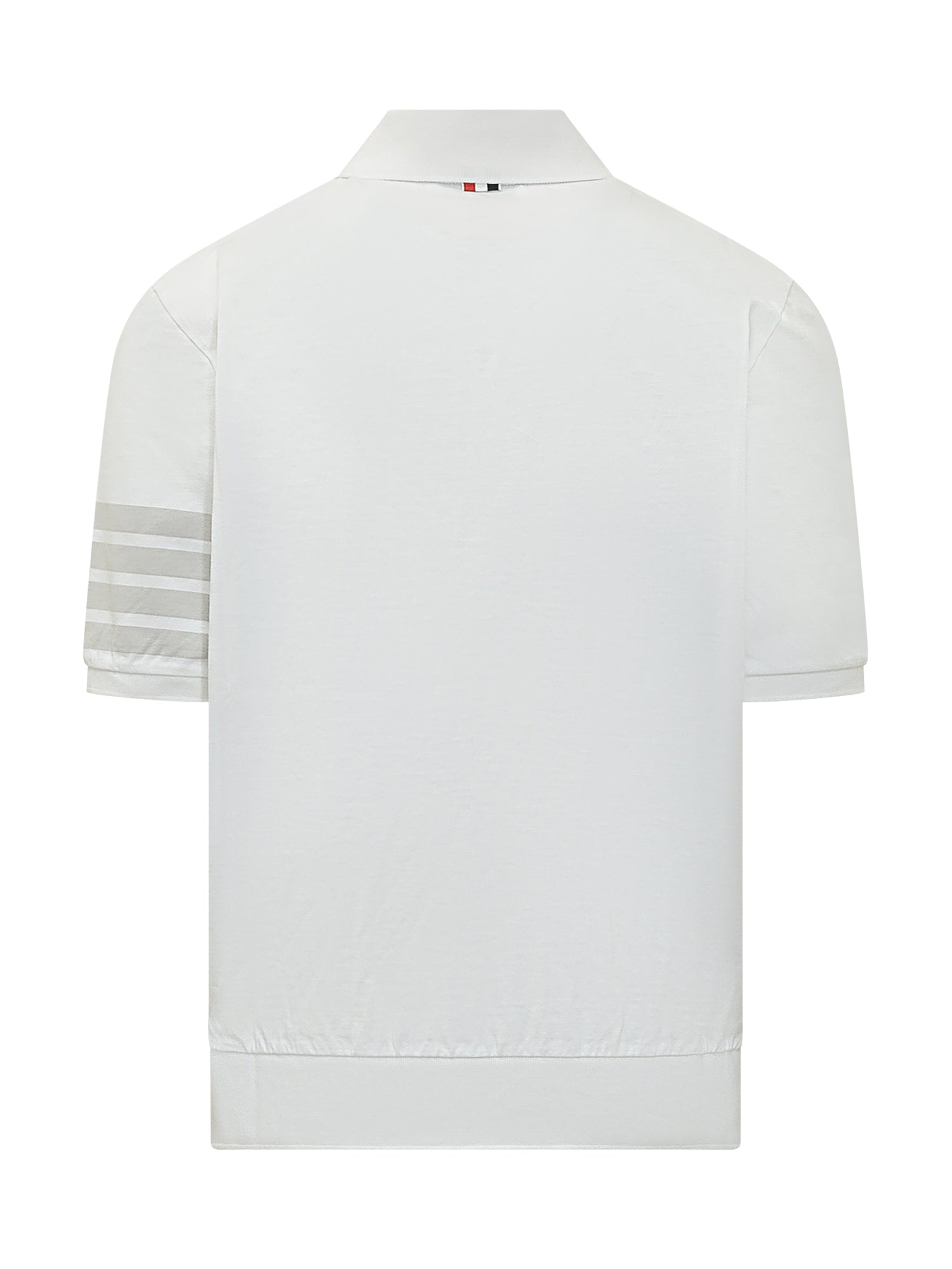 Garment-dyed short sleeve polo featuring a vintage wash. Classic collar, button placket and ribbed hem. Sleeve stripe detail and applied label at the hem add a distinctive modern touch.
