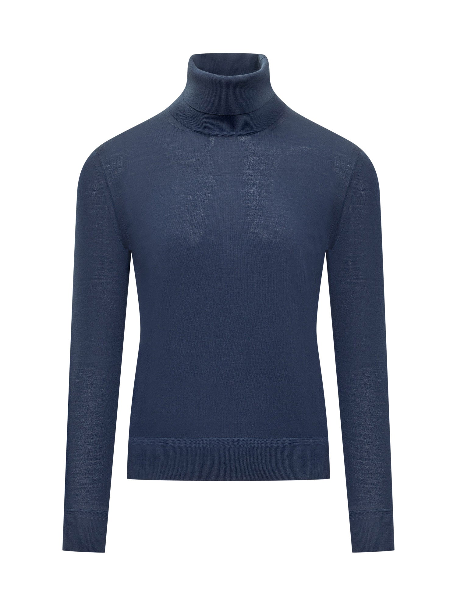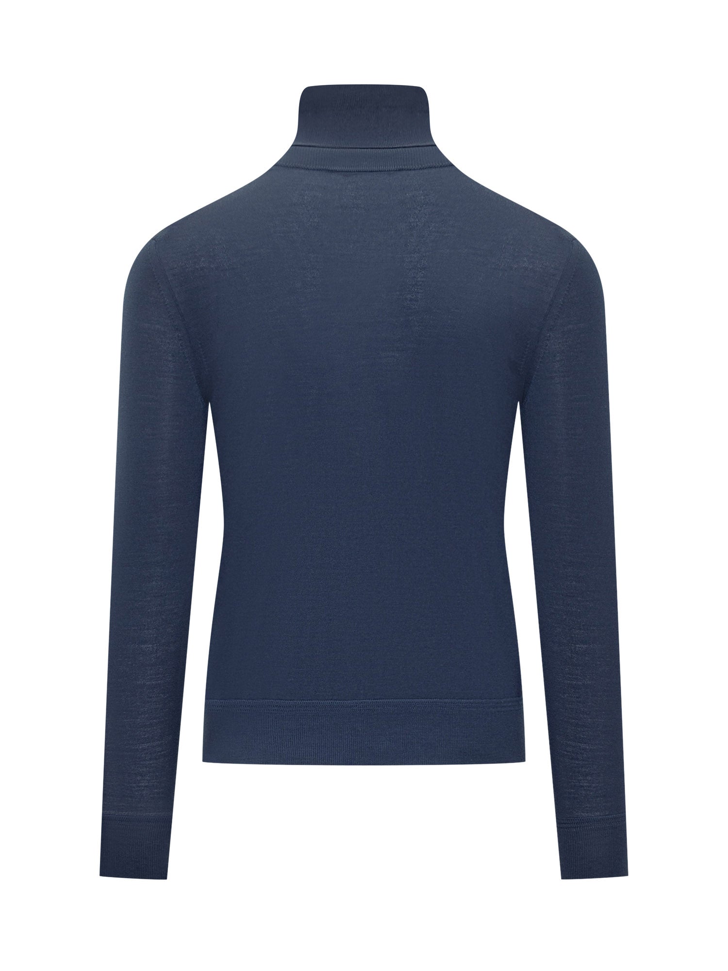 Tom Ford navy blue turtleneck in ultra-fine wool. Minimalist and refined.