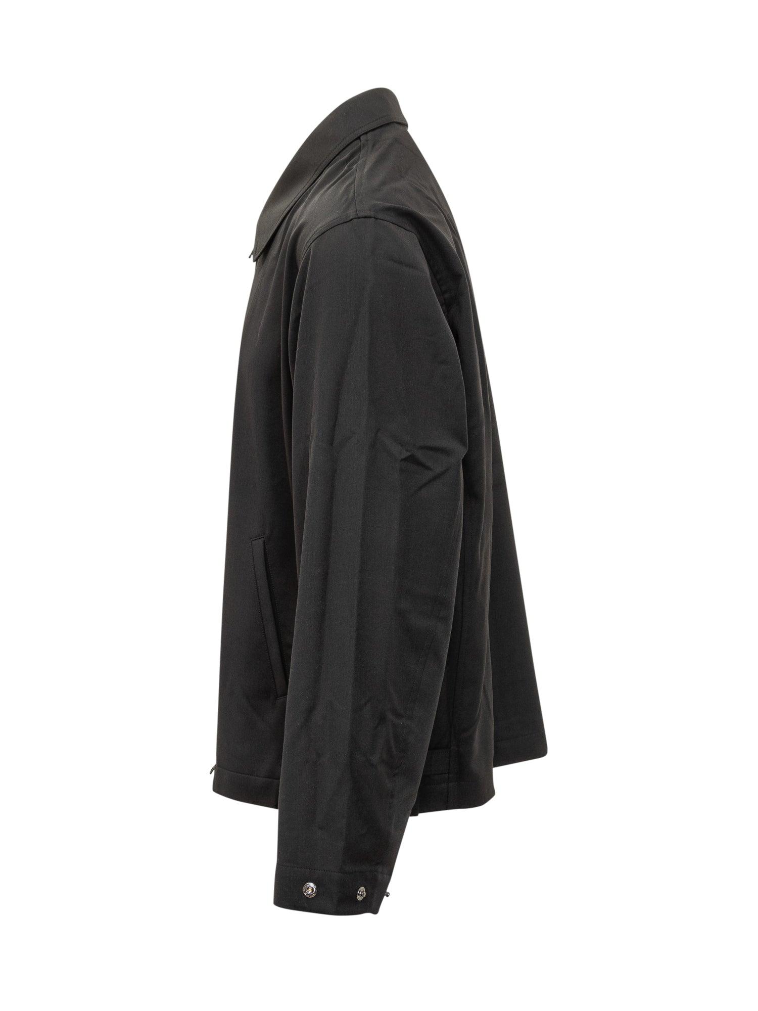 Y-3 black zip jacket with classic collar and minimalist cut. Contemporary style perfect for refined streetwear and casual outfits.