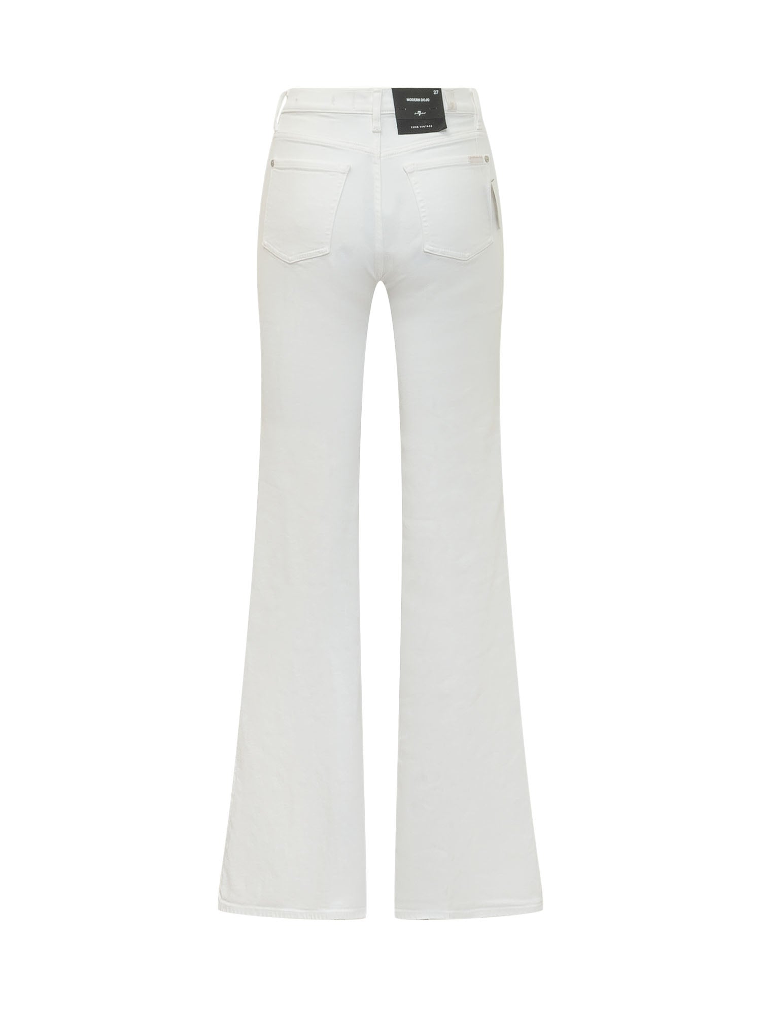 Jeans with button and zip closure, five pockets and flared leg at hem