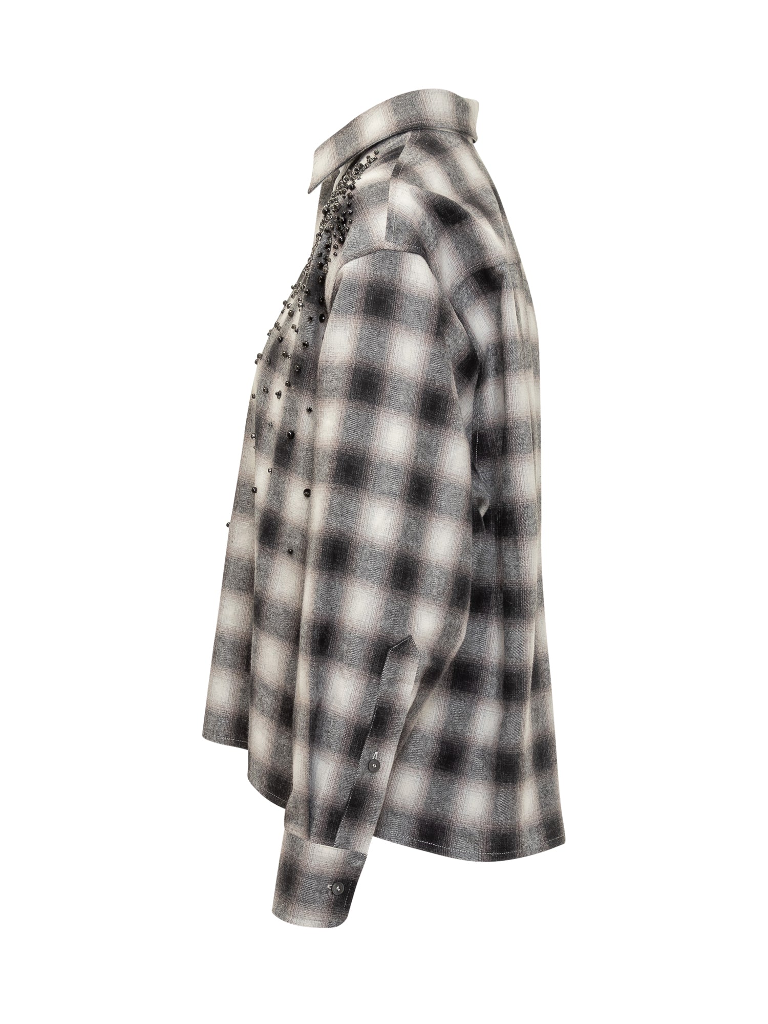 Checked flannel shirt by Des Phemmes featuring rhinestone embellishments on the front.