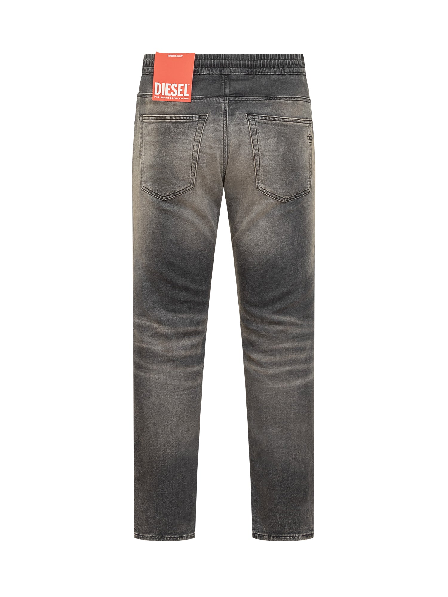Zip and button fly. Elasticated waist. Mid-rise. Regular fit.