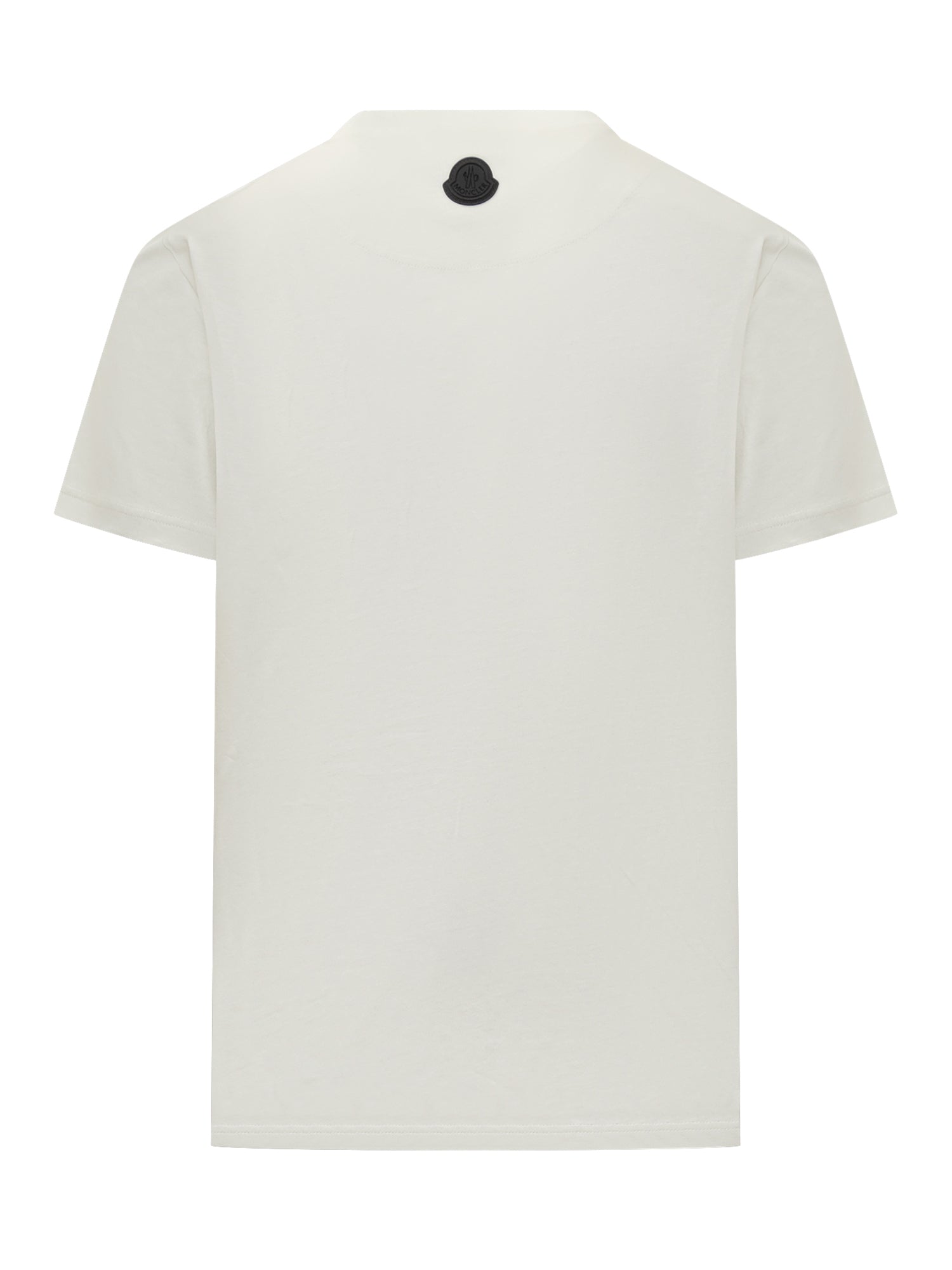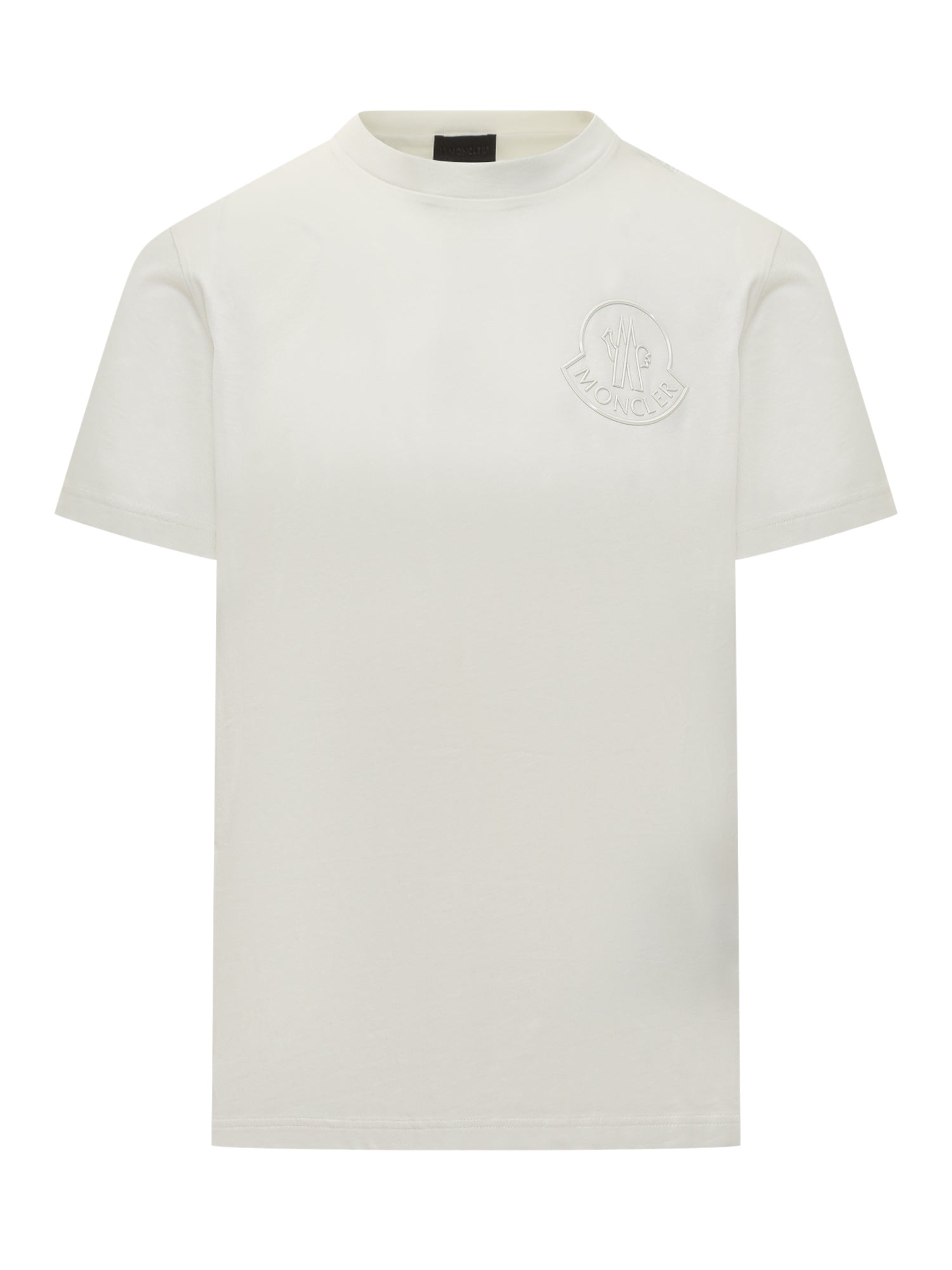 Moncler white cotton T-shirt with tone-on-tone logo on the chest.