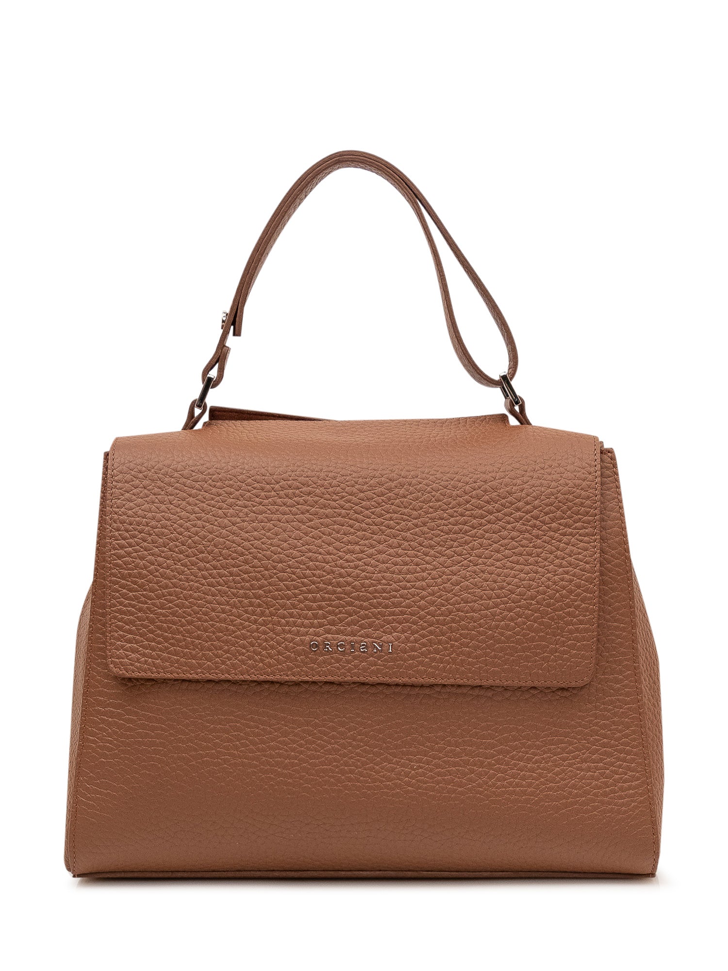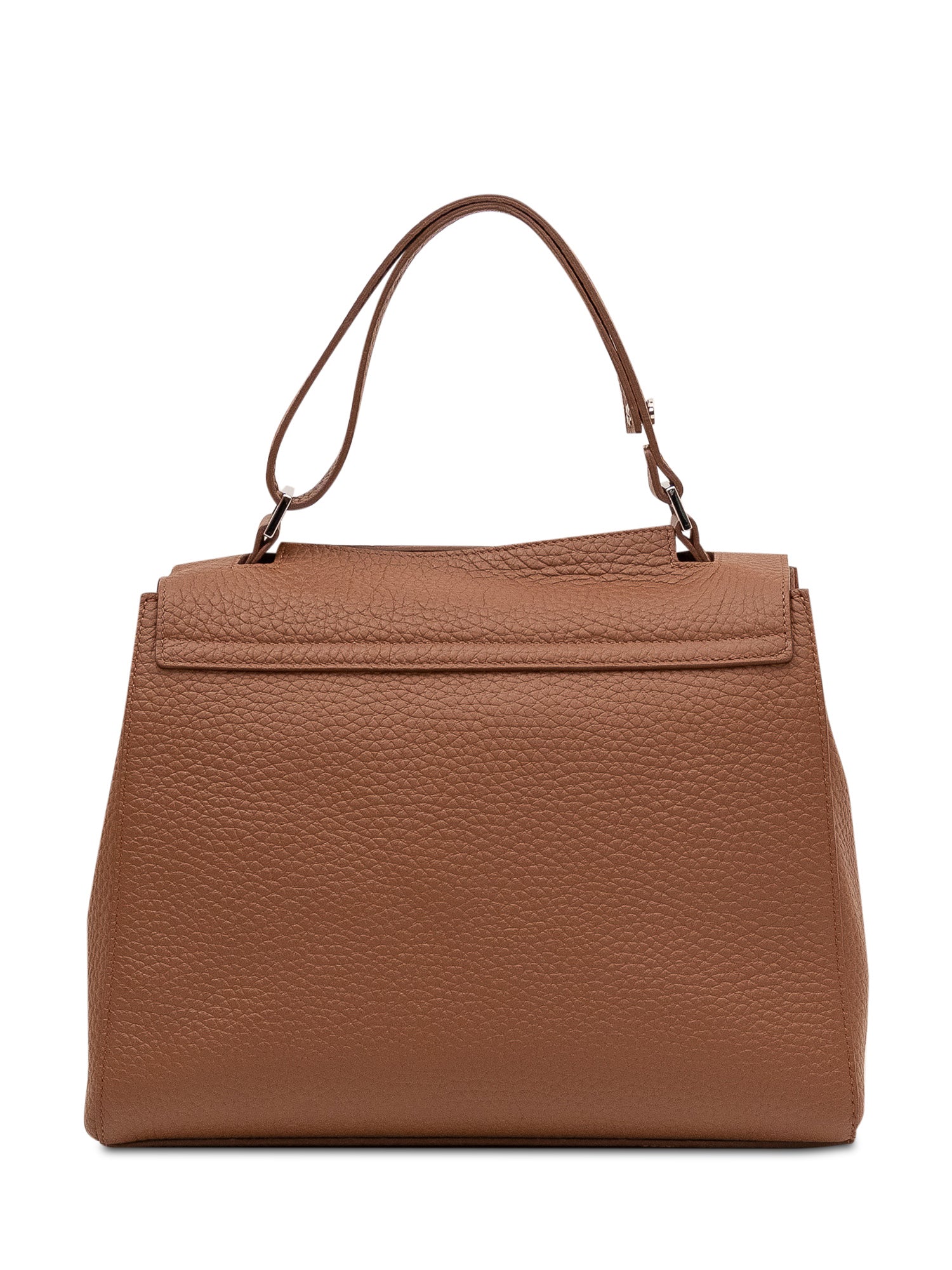 Bag with top handle, flap and soft structure.