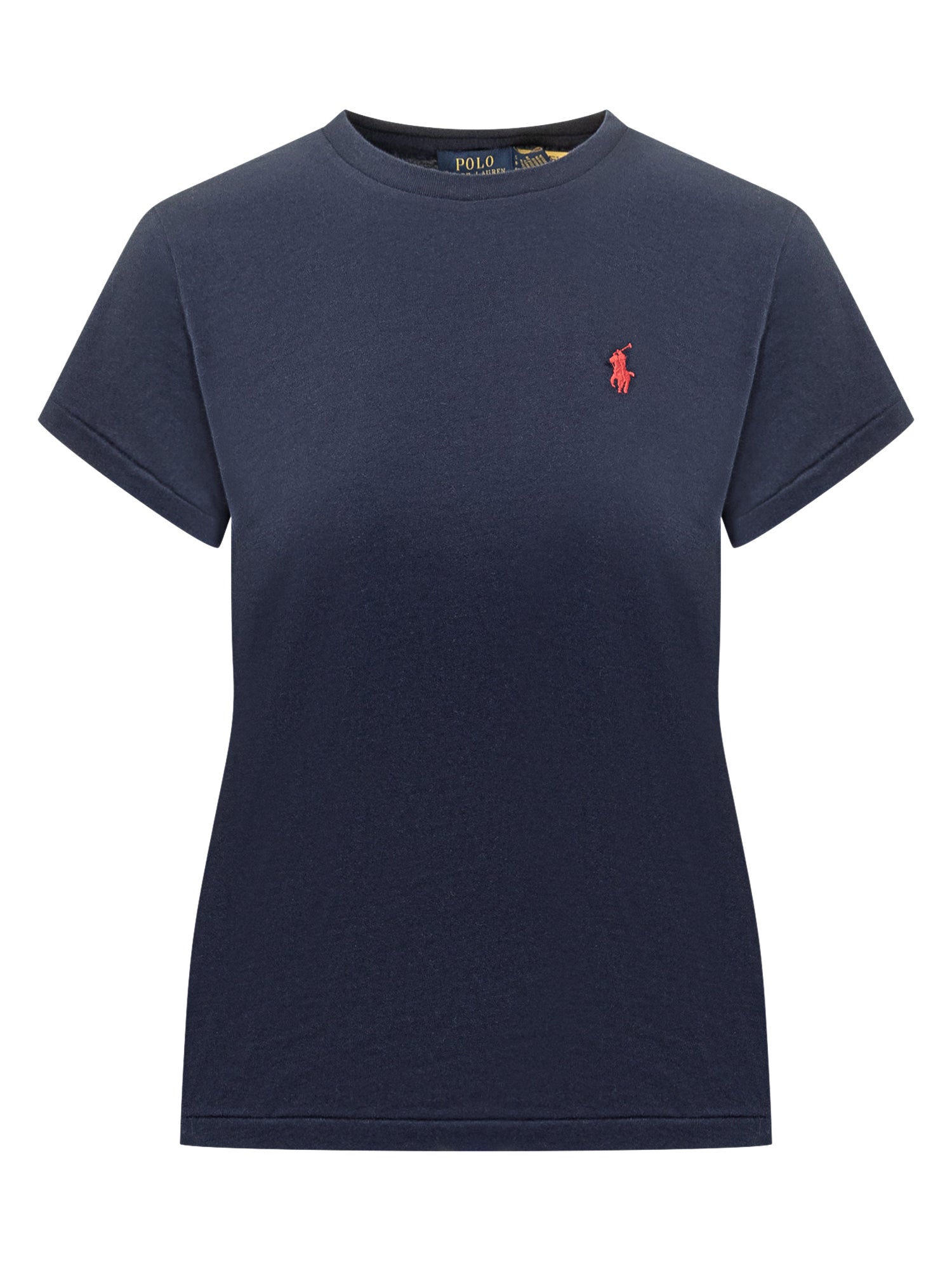 Navy blue cotton T-shirt by Polo Ralph Lauren with classic crew neck and contrasting embroidered logo on the chest.