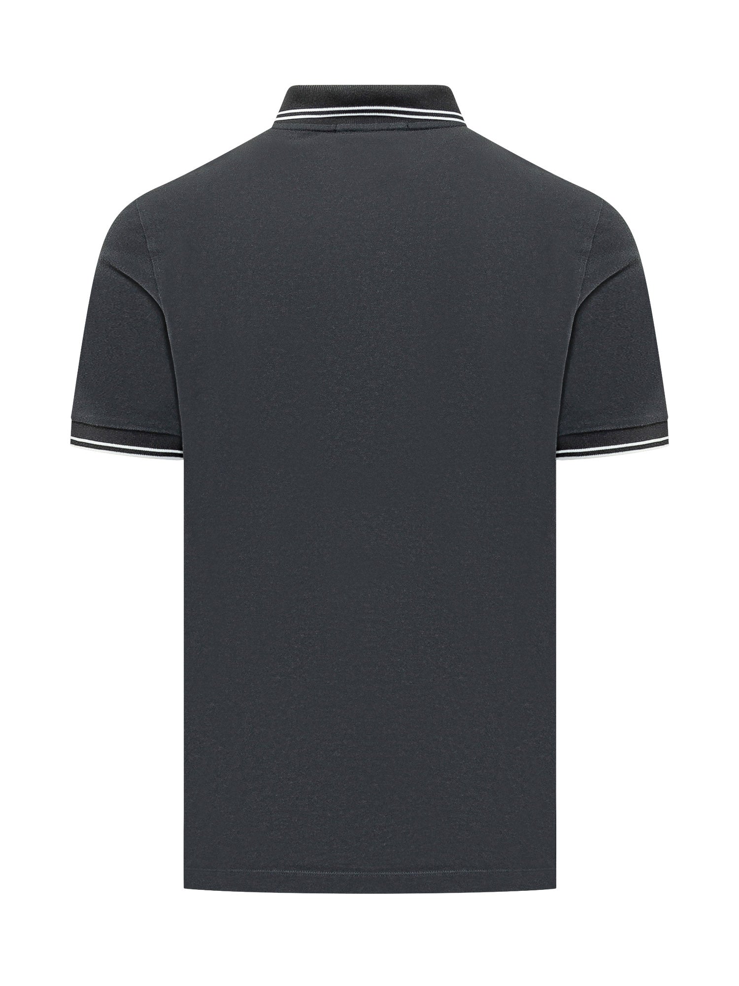 Short-sleeve polo shirt with a classic collar and two-button placket. Regular fit in compact piqué fabric, featuring contrast trims on the collar and sleeves. Chest patch adds a refined, versatile touch for everyday wear.