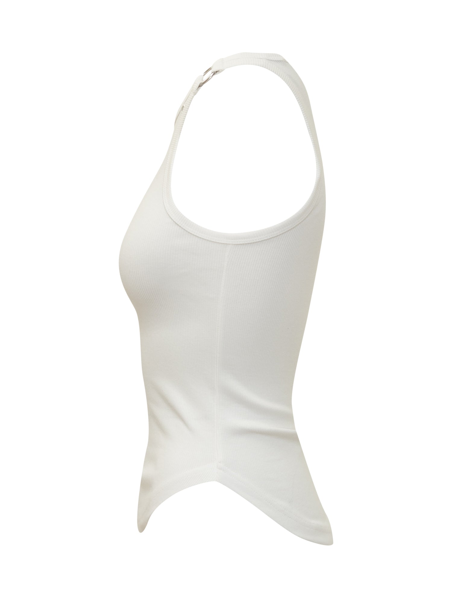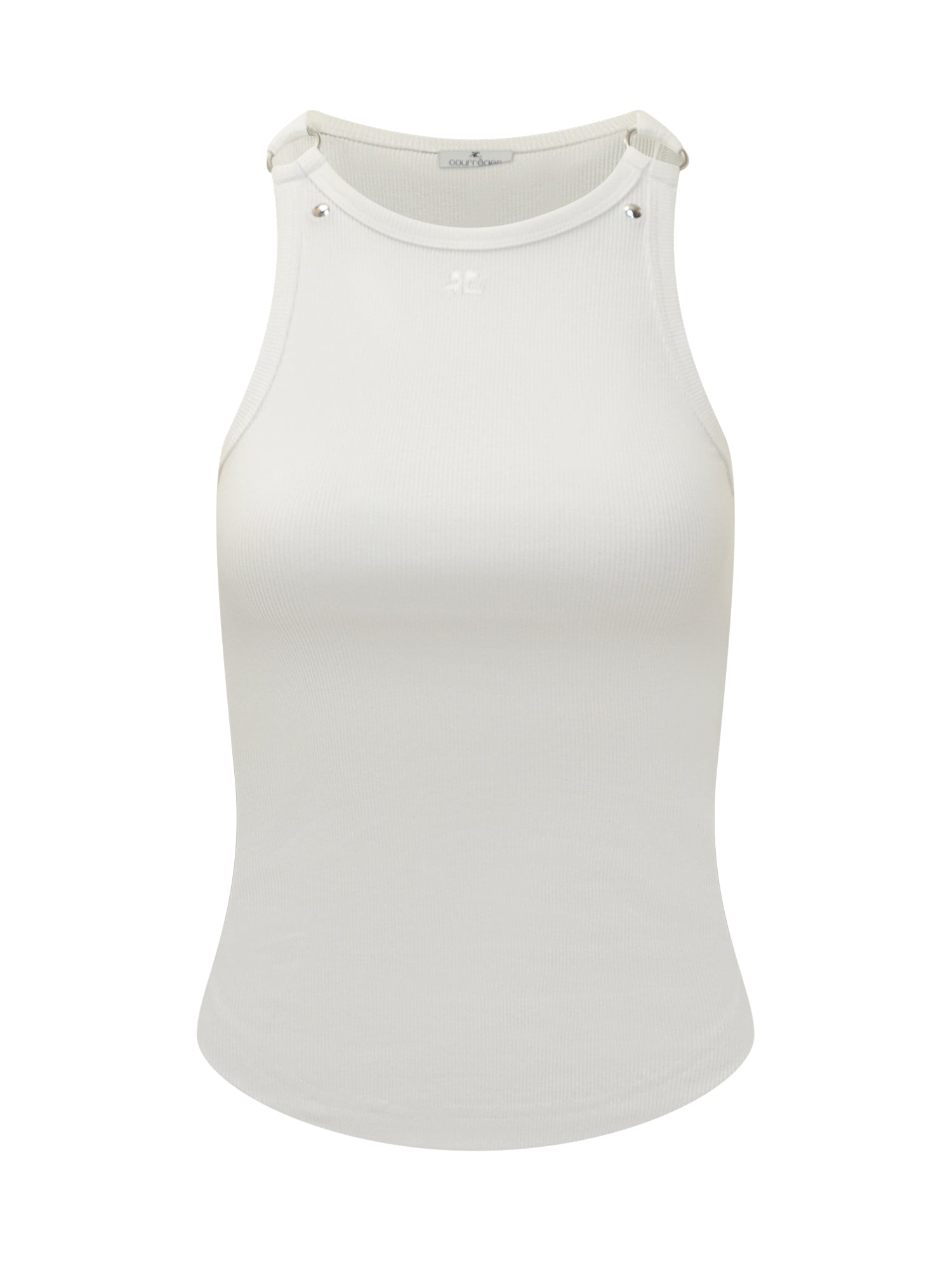 Top Courrèges modello Buckle 90's in cotone a costine, con spalline impreziosite da dettagli metallici.