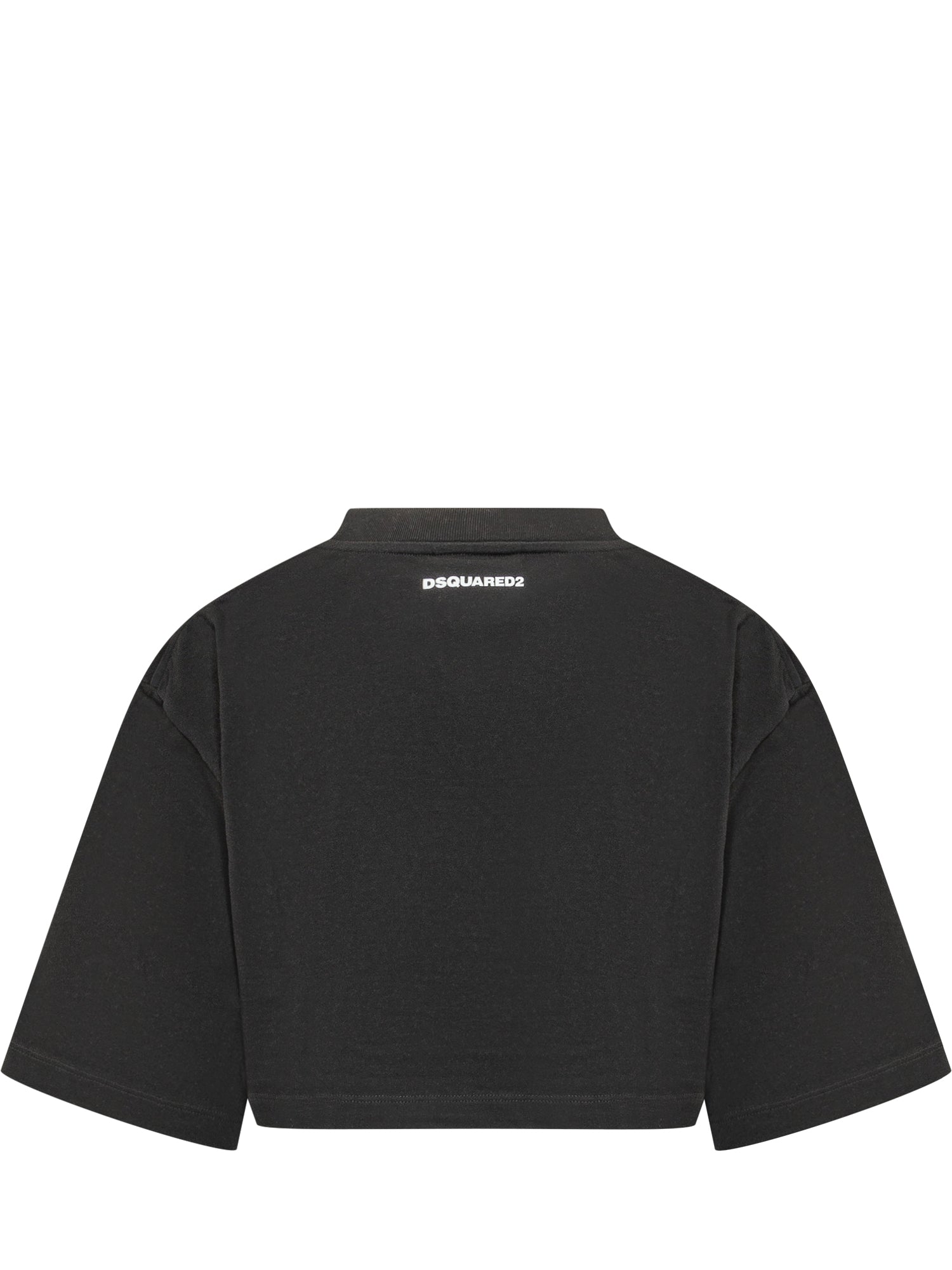 Tshirt cropped in cotone con maxi stampa Iconique frontale. Vestibilità ampia con maniche corte e collo tondo.