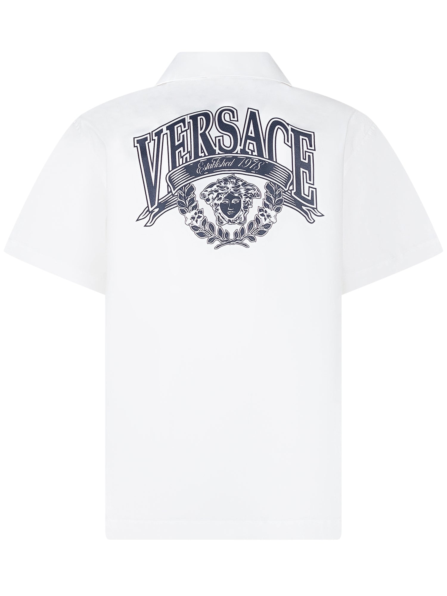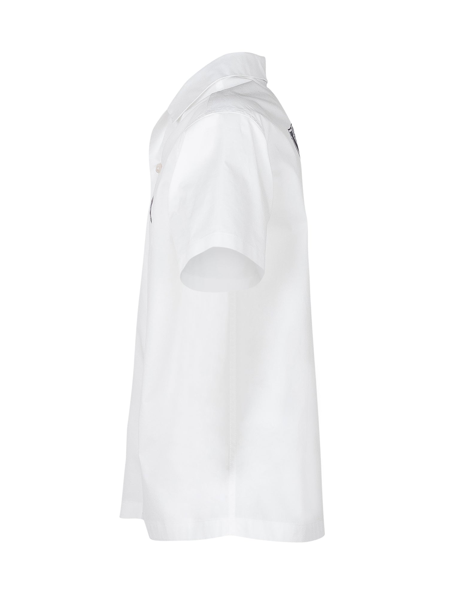 Camicia informale con colletto aperto, chiusura frontale con bottoni e maniche corte. Modello con tasca applicata sul petto e logo ricamato. Linea dritta ideale per look versatili e contemporanei.