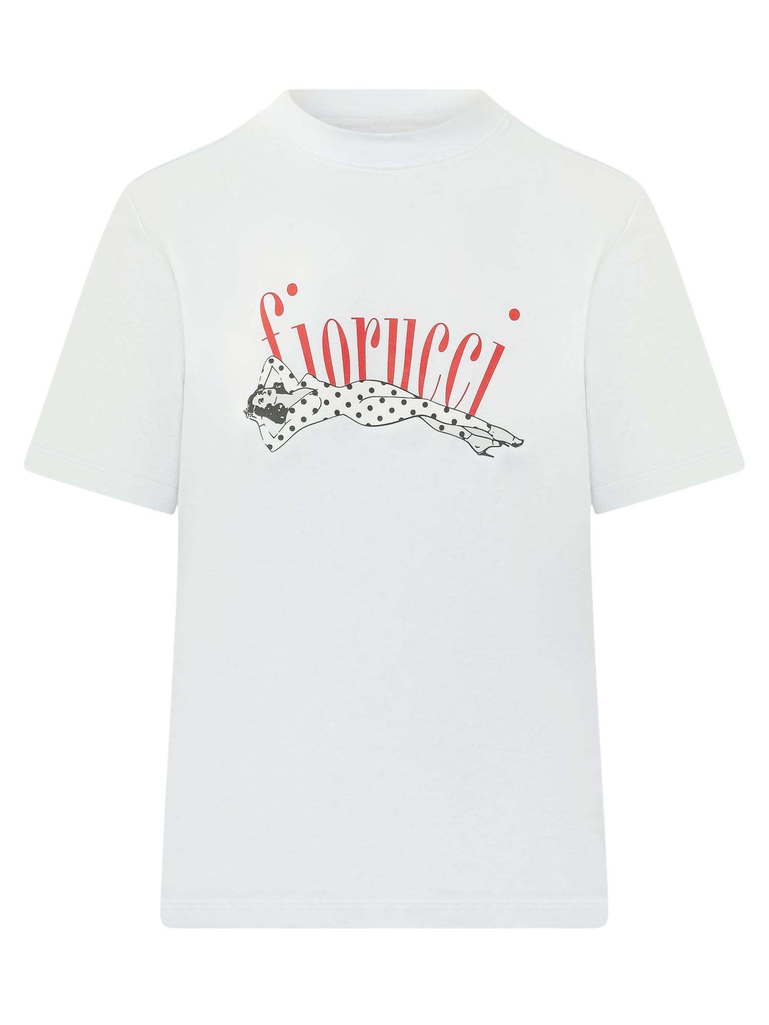 T-shirt a maniche corte con girocollo, stampa frontale con figura pin up e motivo a pois, vestibilità regolare
