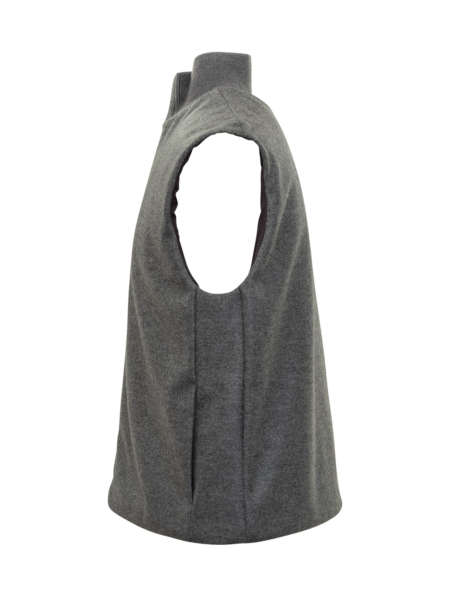 Gilet Jil Sander in morbida lana grigia, caratterizzato da linea essenziale, zip a doppio cursore e collo alto.