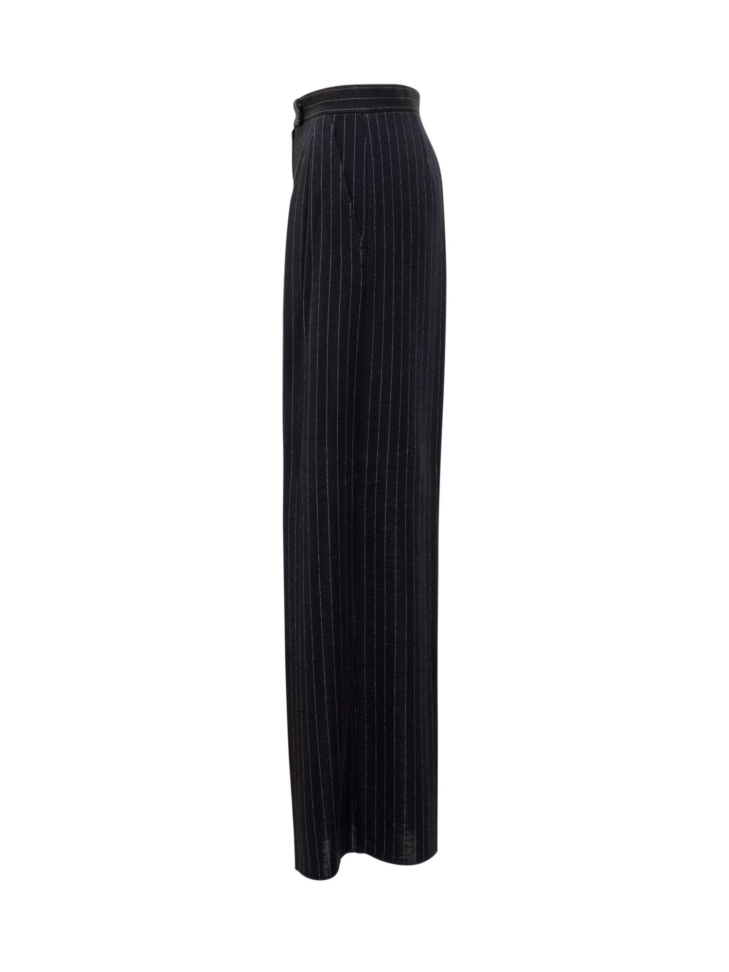 Pantalone palazzo. Chiusura con bottone, ganci e zip. Due tasche. Pantaloncini sottoveste.