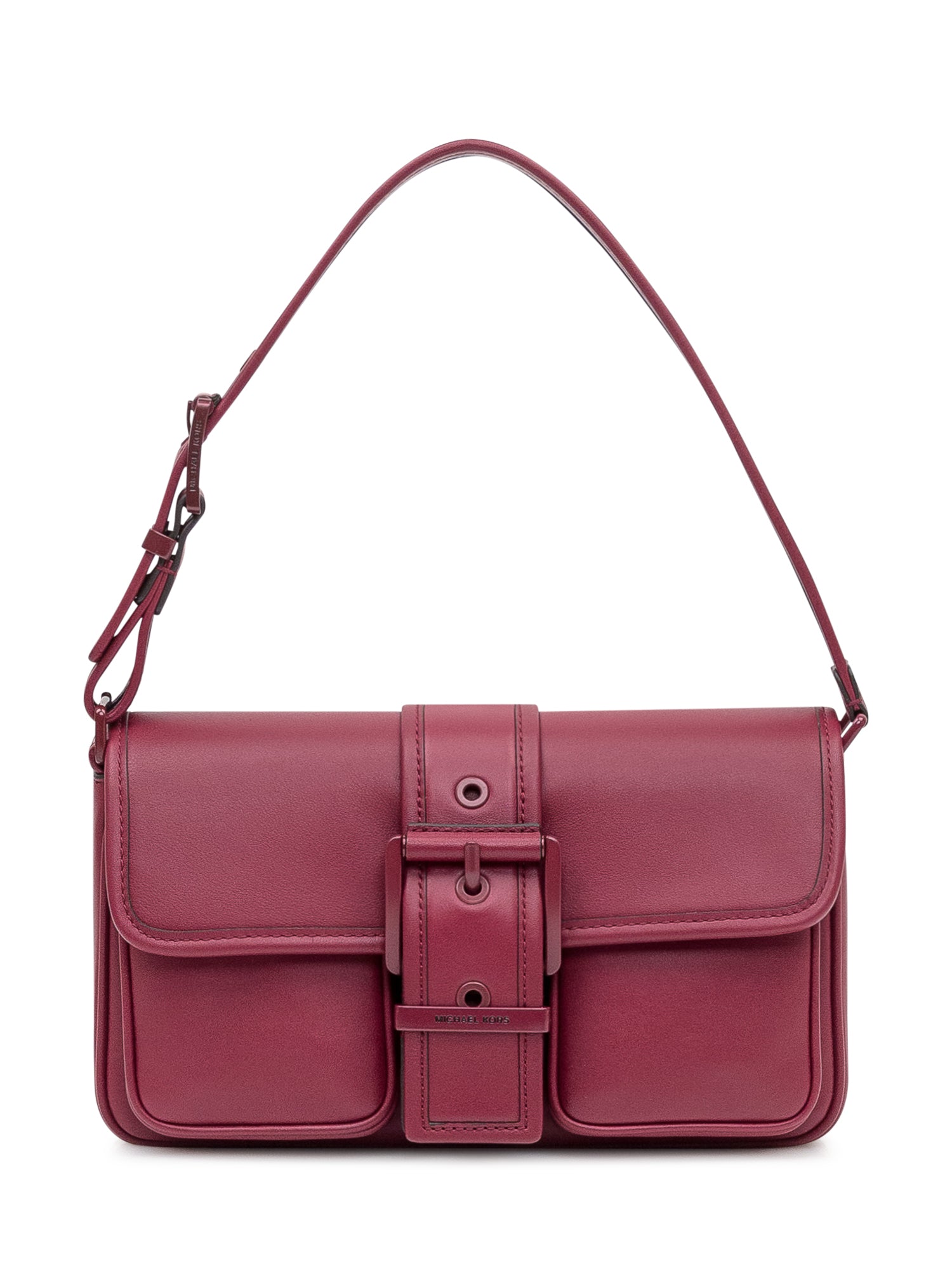 Borsa a spalla Michael Kors in pelle color borgogna con maxi fibbia centrale e tasche frontali.